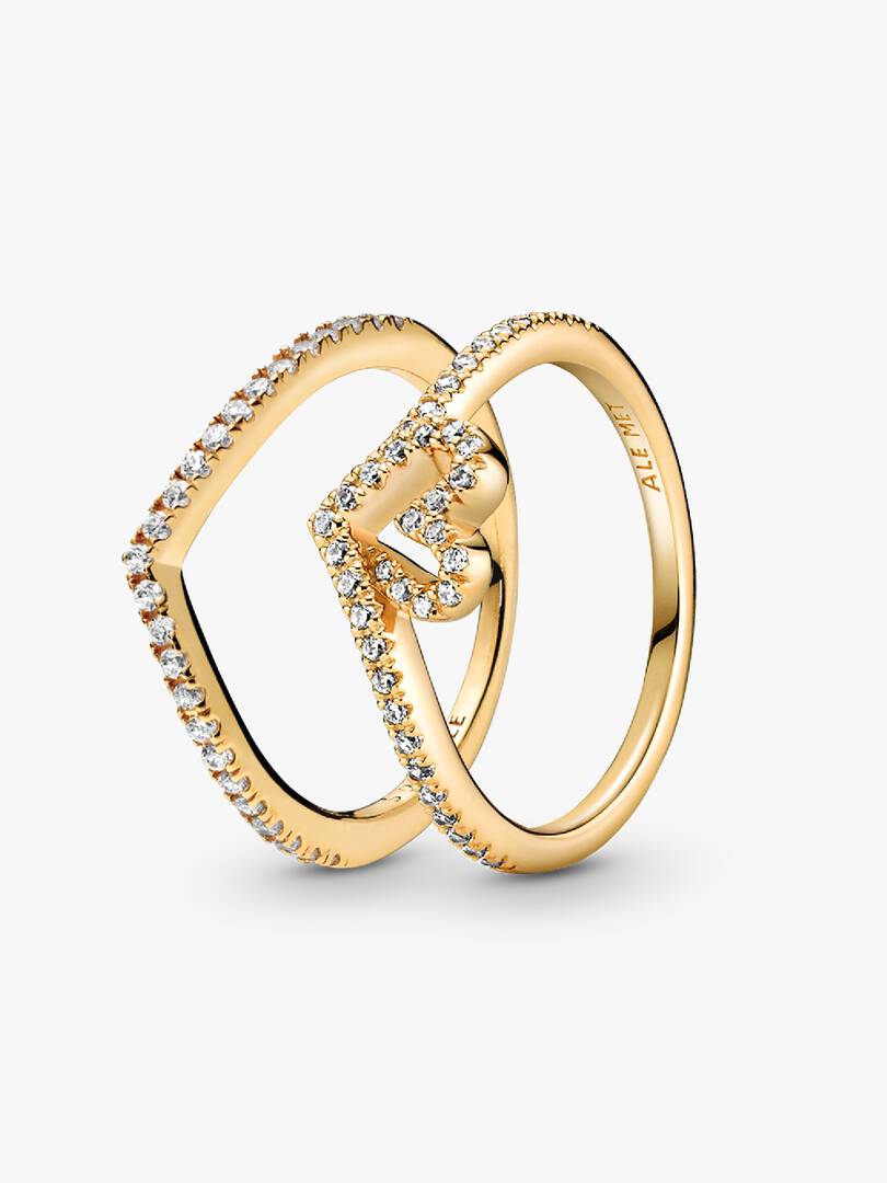 Smooth and sparkling surfaces come together in this versatile ring set that’s truly better together. The Sparkling Wishbone Ring in 14k gold-plated unique metal blend beautifully complements the Timeless Wish Sparkling H,eart Ring with heart-shaped, stone-embellished detail that flows into its wishbone design.