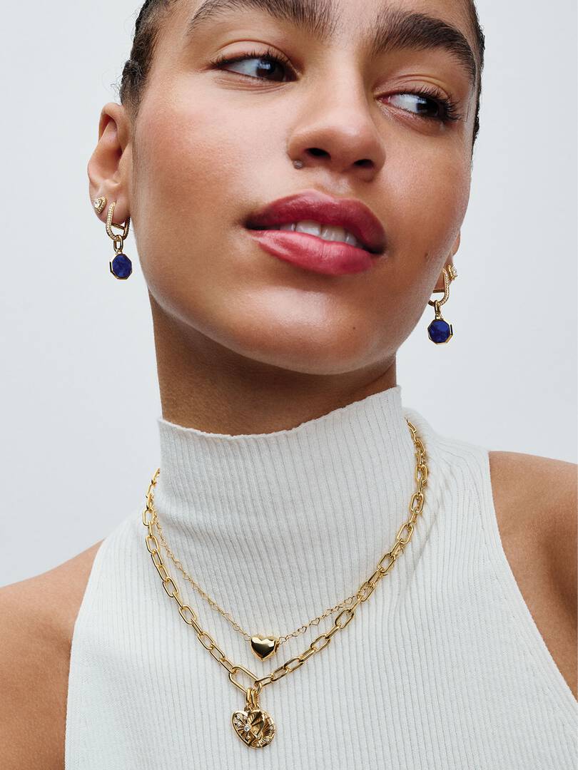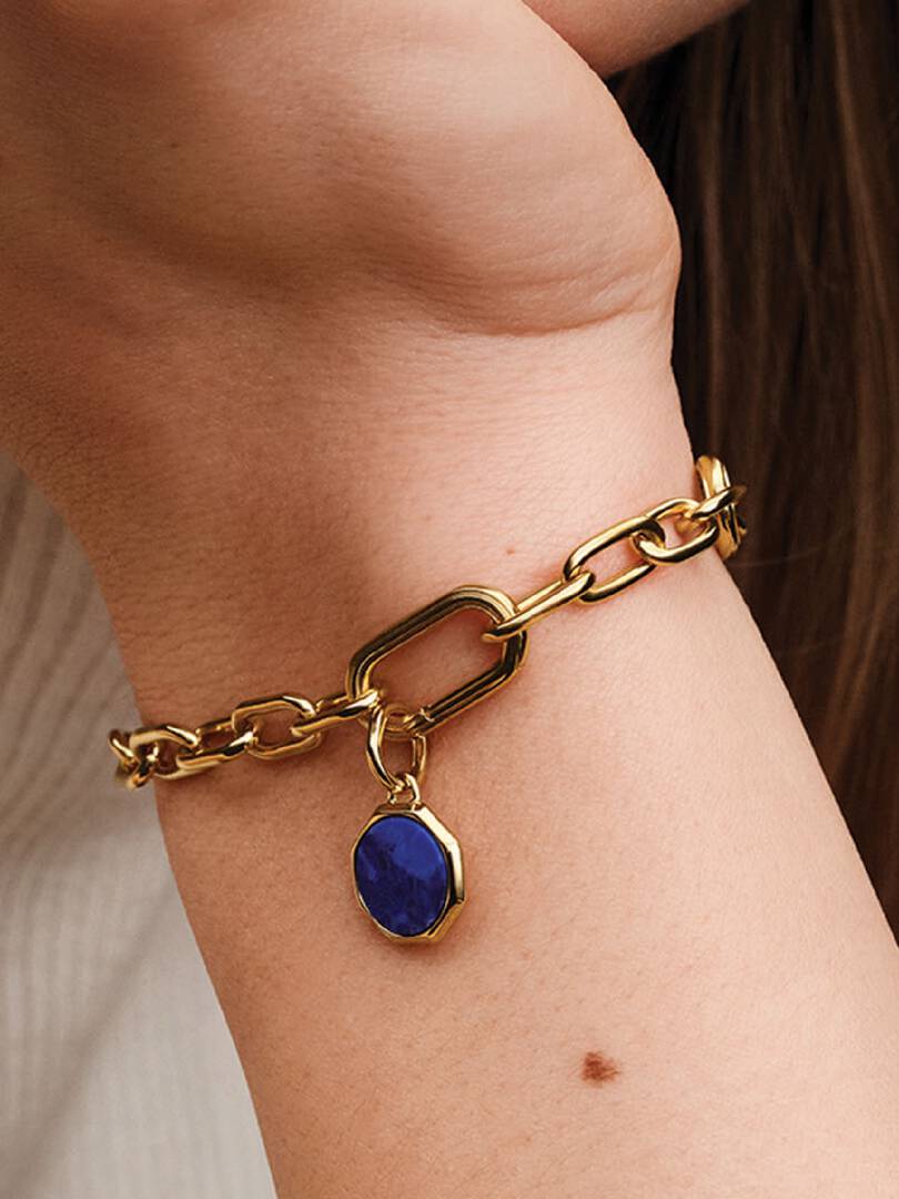 Mini size, maximum impact. This 14k gold-plated charm is inspired by the lapis lazuli stone with its deep blue color and speckled effect, symbolizing transformation, growth and positivity.