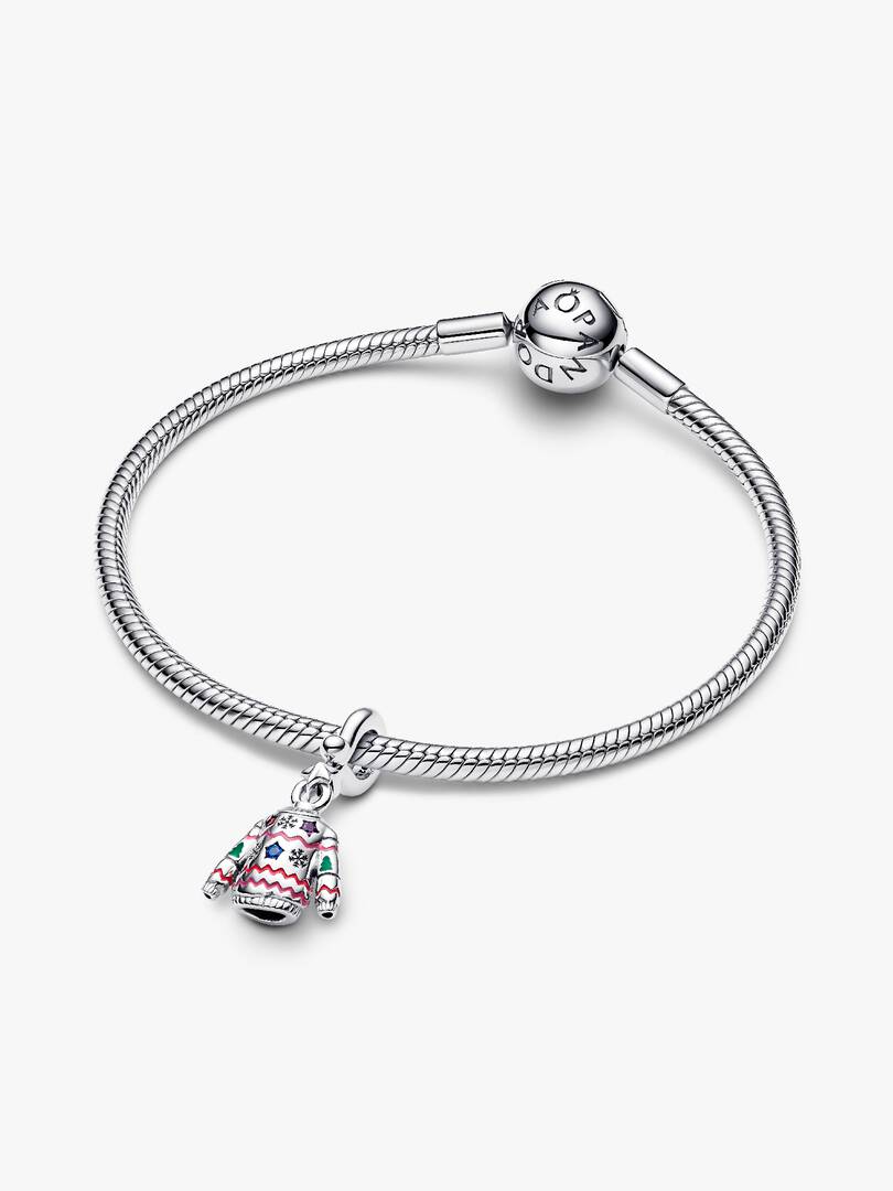 Cosy up your look with our Christmas Sweater Dangle Charm. Crafted in sterling silver with sparkling stones and enamel details, the charm also features the engraved messages “Dear Santa I’ll be good next year!” and “2024,.” Add it to your collection for a pop of festive cheer.