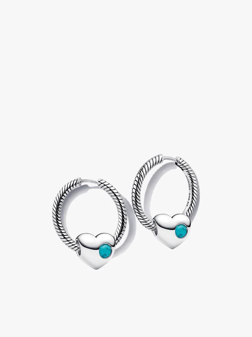 This set includes sterling silver hoop earrings featuring our signature snake chain pattern and an engravable heart charm with a turquoise-inspired stone for December. Add a heartfelt message and make it yours.