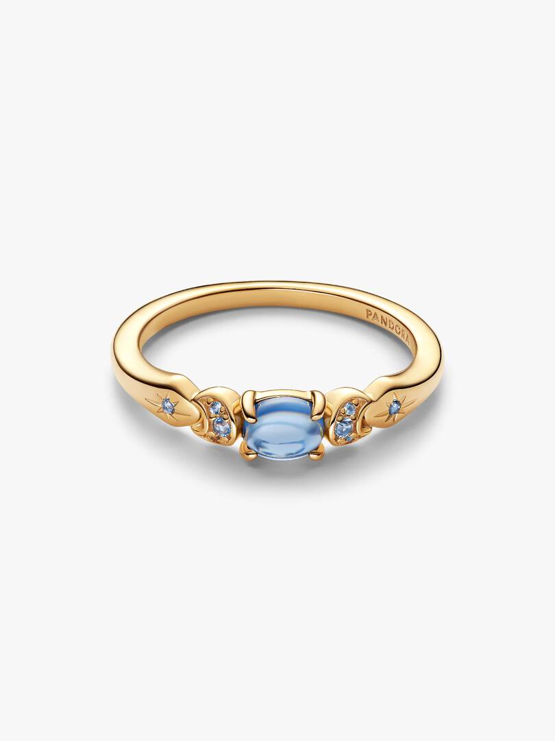 Inspired by Disney??s Jasmine, this 14k gold-plated ring features a moonlight blue center stone, sparkling crescent moons and stars??celebrating courage, self-belief, and the magic of dreaming big.
