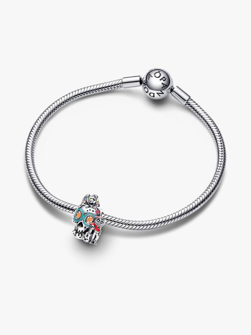Celebrate the power of family with the Disney Pixar Coco Miguel & Dante Skull Glow-in-the-dark Charm. Made of sterling silver, this charm features much-loved characters Dante and Miguel from Disney and Pixar’s Coco film., Colourful enamel details ?C some of which are glow-in-the-dark ?C pop from the silver base, which has cut-out, grooved and imprinted details. For Disney lovers and charm collectors alike, this skull charm is a tribute to the love and traditions that connect us across generations.