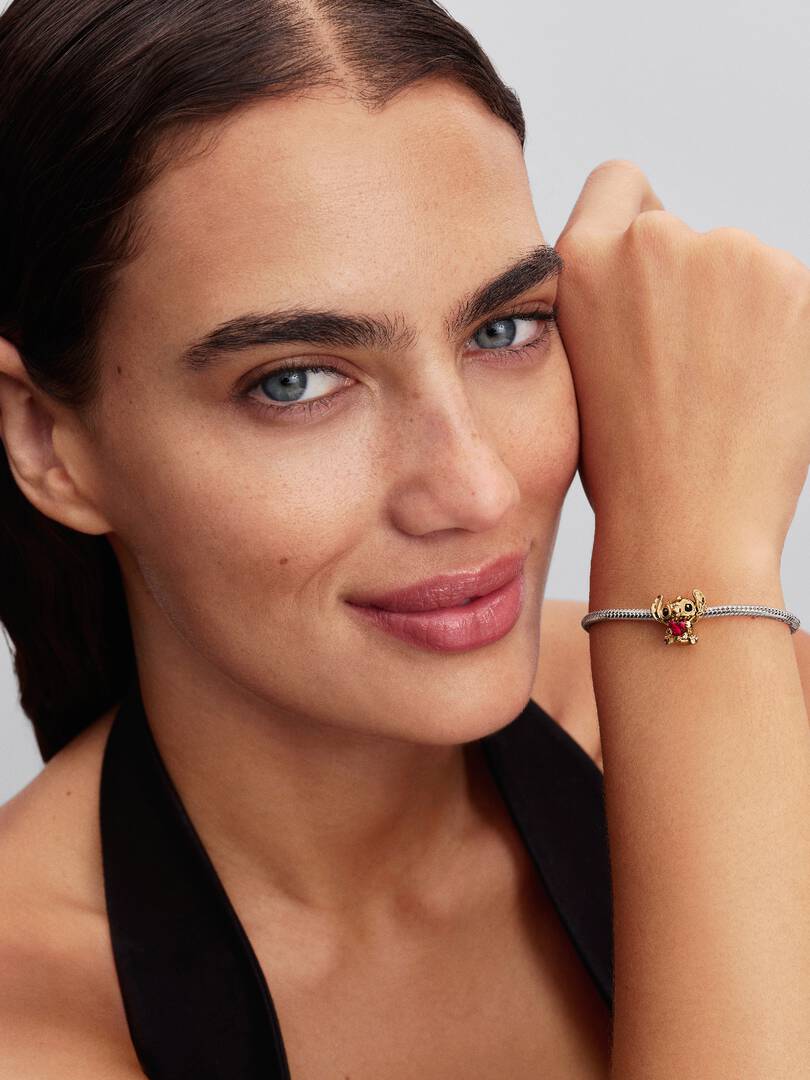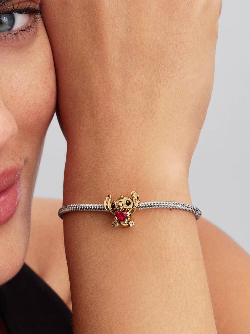 Show your wild side with this 14k gold-plated Disney’s Stitch charm. Featuring enamel details and a heart-shaped fuchsia man-made crystal, it’s a playful expression of love.