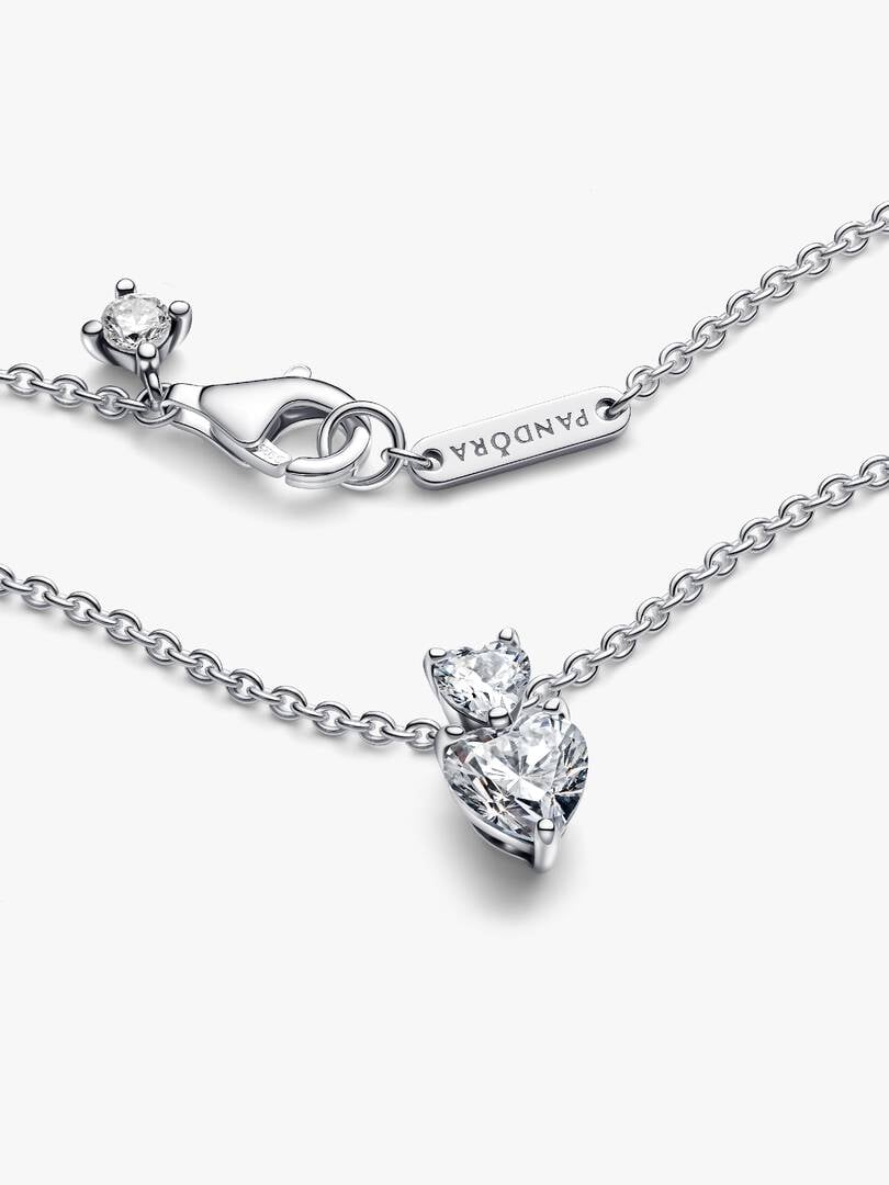 Double Heart Pendant Sparkling Collier Necklace Sterling silver