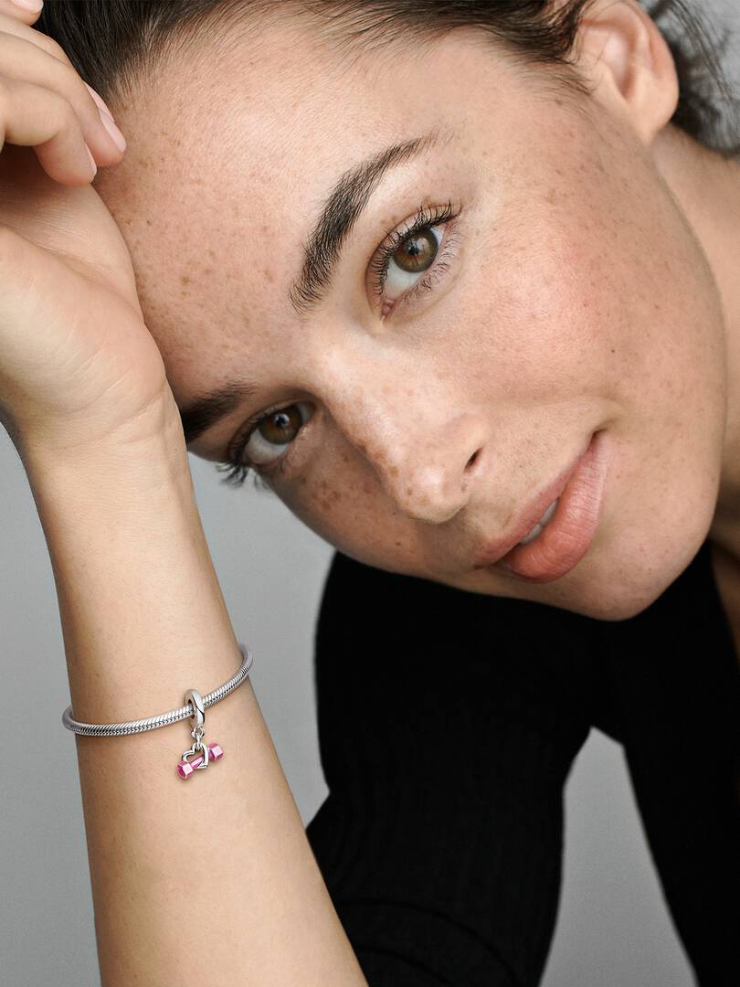 Wear your love for fitness with the Dumbbell & Heart Dangle Charm. Hand-finished in sterling silver, this charm features a dumbbell sitting inside an open heart shape. The dumbbell is covered in hand-applied pink enamel,, with delicate heart details on each end. With a design inspired by fitness and strength, this charm is perfect for anyone who finds their joy in physical movement and excercise, whether that’s at the gym, at home or outside.