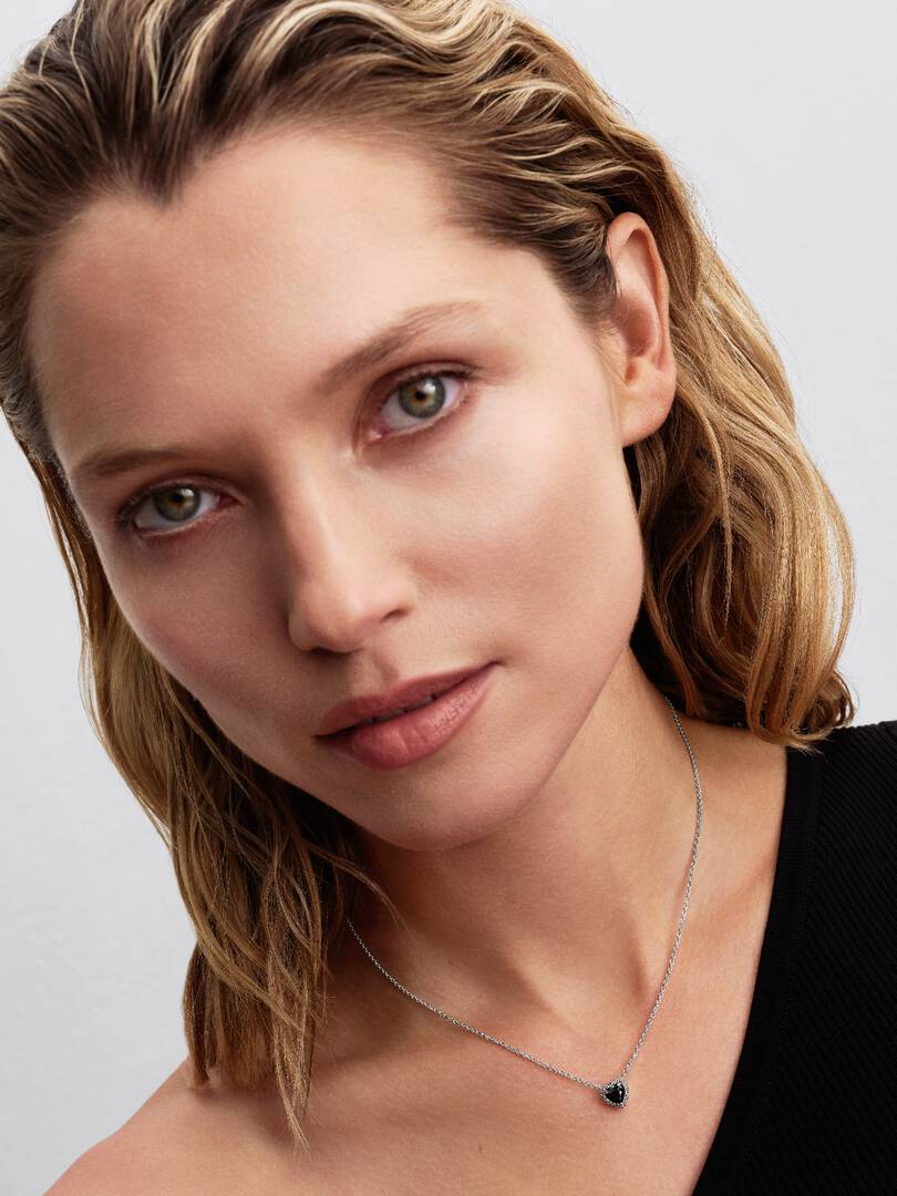 Fall in love with this heart-shaped necklace. Crafted in sterling silver and set with a black crystal and clear cubic zirconia, it represents the beauty of timeless design.