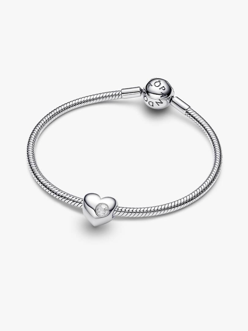 Engrave a message of love. Our sterling silver heart charm with a flush-set clear cubic zirconia is the perfect canvas for a personal note or meaningful memento.