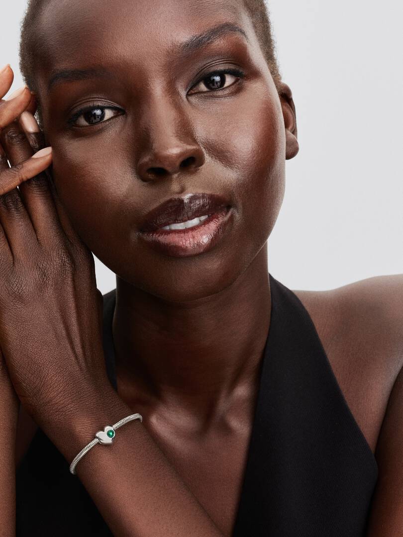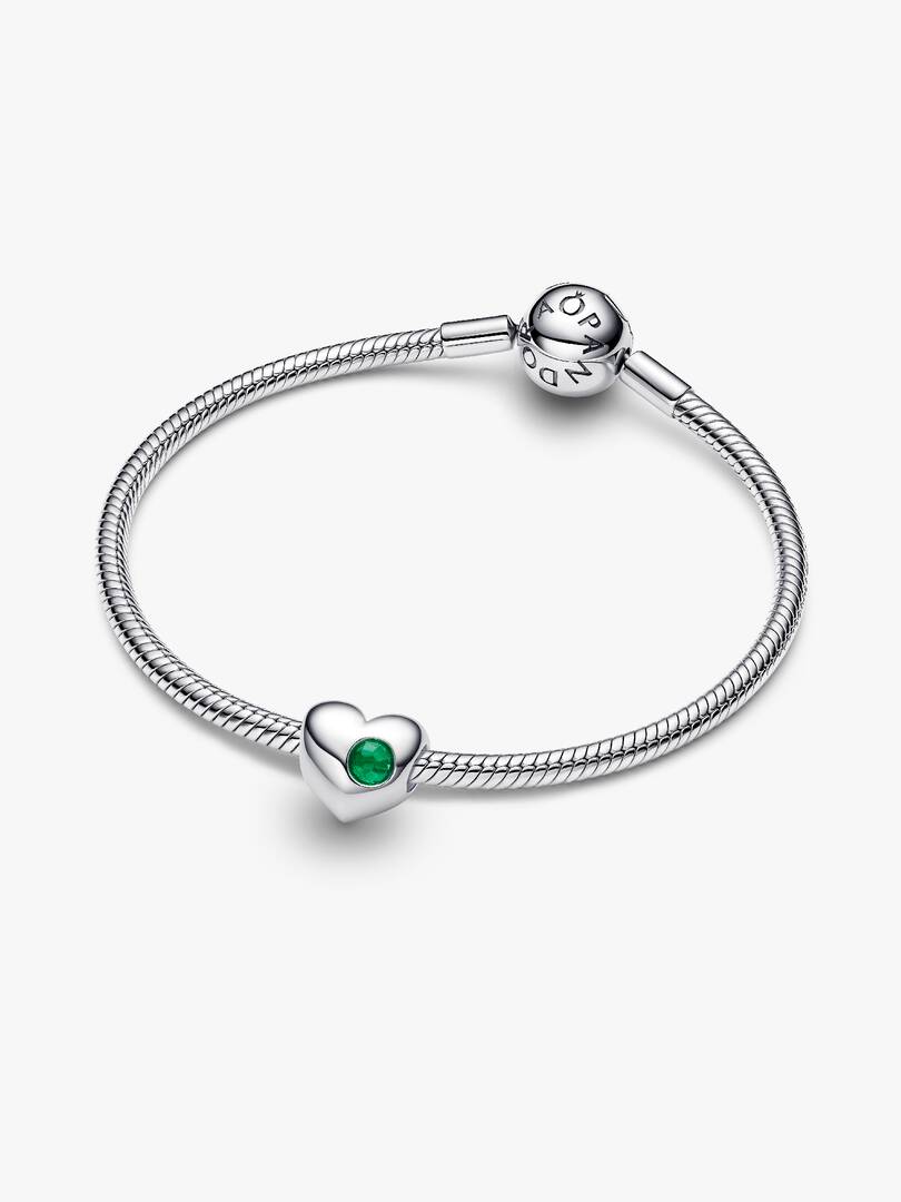 Engrave a message of love. Our sterling silver heart charm with a flush-set green man-made crystal is the perfect canvas for a personal note or meaningful memento.