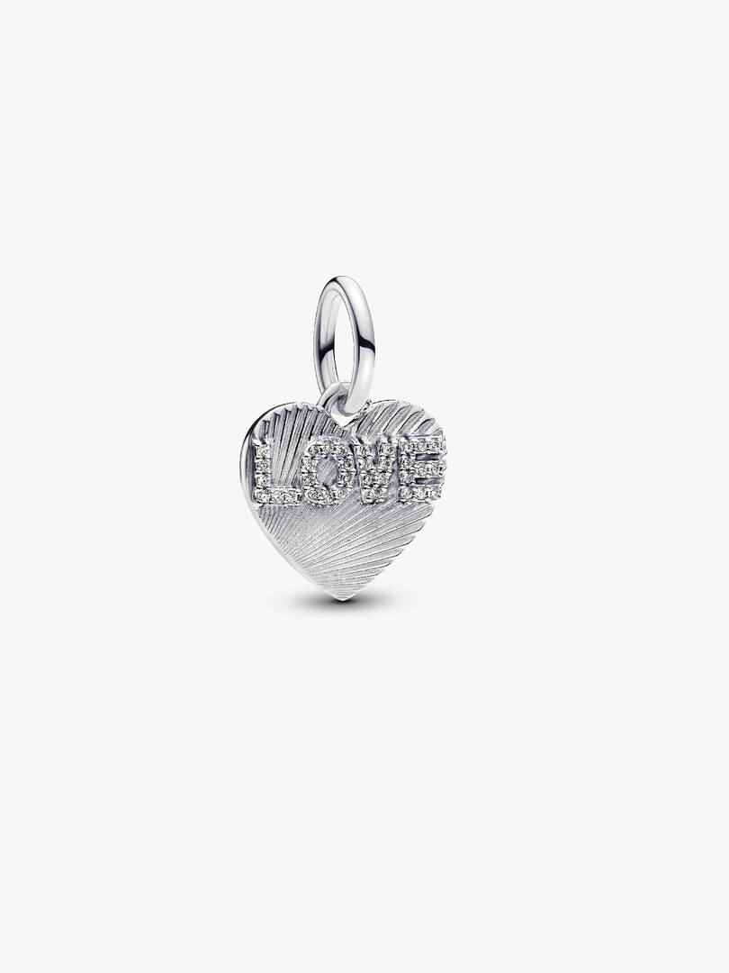 Spell out your love this holiday with our Engravable Love Heart Dangle Charm. This dual-sided sterling silver charm features LOVE set in sparkling stones on the front. The back is engravable for your personal message. Ma,ke your gift one of a kind or engrave it with something that holds meaning only to you.