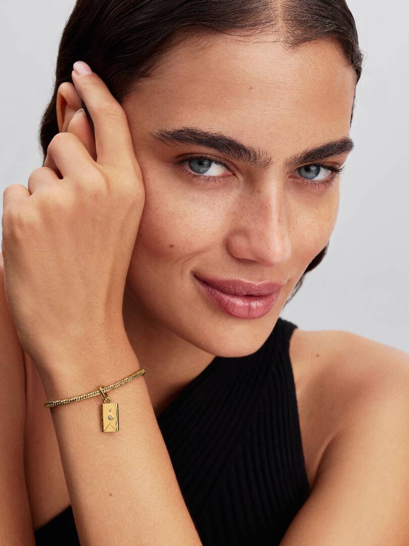 Send a little love. This 14k gold-plated openable envelope dangle sparkles with clear cubic zirconia and offers engravable space inside and on the front ?C perfect for heartfelt messages.