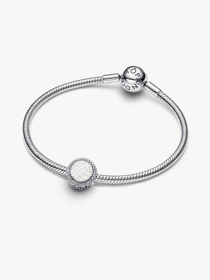 Serve up sparkling style with our volleyball charm in sterling silver. With white enamel detailing on one side, it also offers a polished back to engrave a personal message.