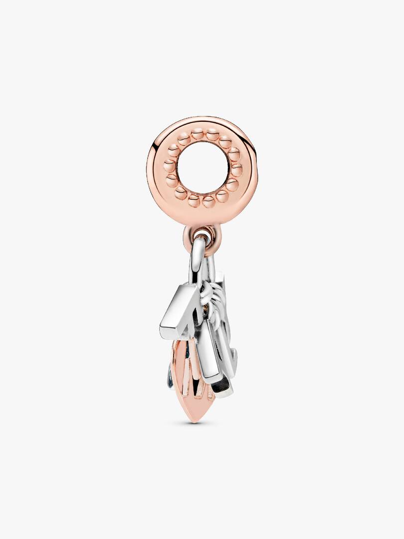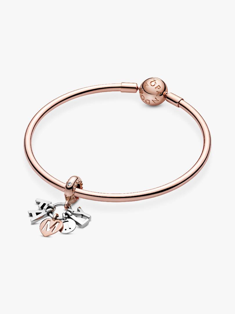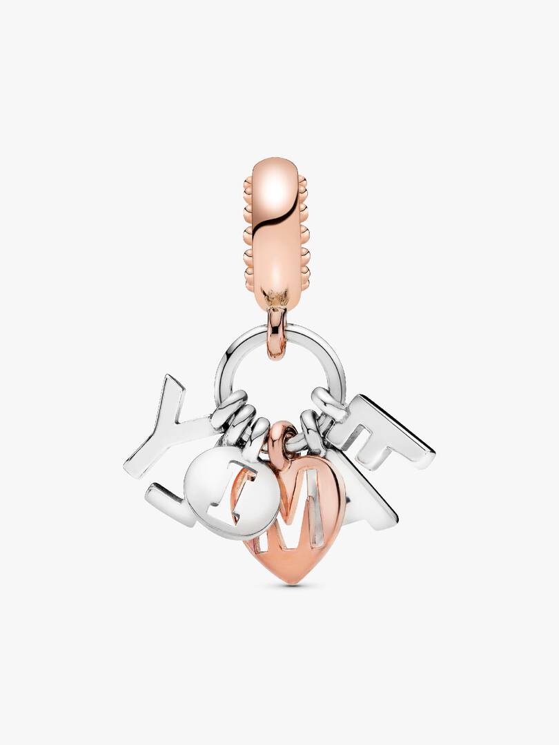 Wear what matters the most to you on your bracelet with this playful Family Letters Dangle Charm in sterling silver and 14k rose gold-plating. Made to be worn on Pandora Moments bracelets, the two-tone design holds six l,etter charms that spell out the word “family”. You can also wear it on a necklace as an alternative to a pendant that reminds you to keep your family close.