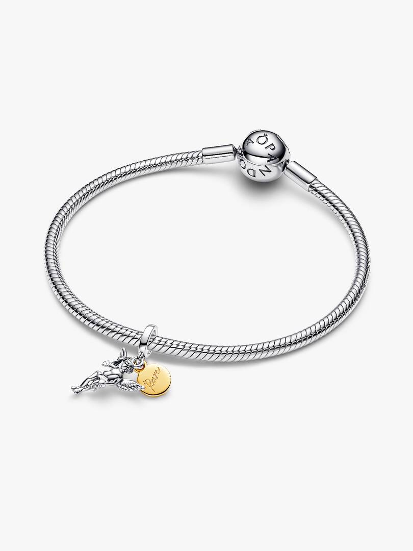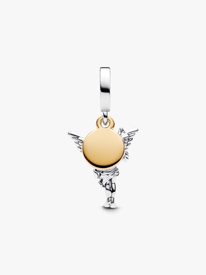 Fall in love every day with our Cupid Dangle Charm, hand-finished in sterling silver and 14k gold plating. Engraved with the message “Rare”, this charm features the mythic god of love, complete with sculpted wings and ar,row in hand. Add Cupid to your collection as a daily reminder that love can strike at the most unexpected moments.