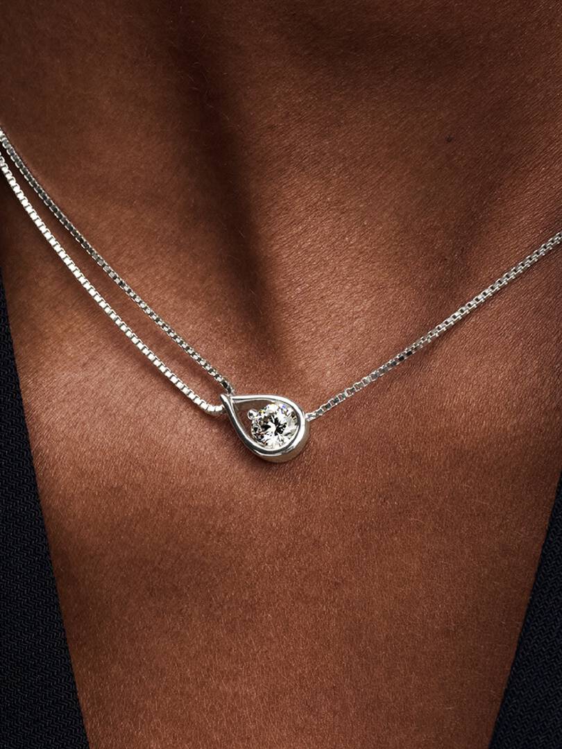 Discover lab-grown diamonds as you’ve never seen them before. A radiant 0.75 carat lab-grown diamond floats within our unique infinity motif crafted in 14k white gold, creating a captivating centerpiece for this pendant ,necklace. Our fluid infinity design symbolizes infinite joy, optimism and strength. The round brilliant excellent cut lab-grown diamond is suspended from a refined box chain in 14k white gold, which doubles up on one side to add a modern twist to the design. The double chain leads to a sliding ball closure, allowing you to adjust the length of the necklace so it shines on any neckline. Pandora Infinite lab-grown diamonds at and above 0.50 carat are certified by IGI. Each Pandora Lab-grown diamond is treated with a post-growth color enhancement called annealing.