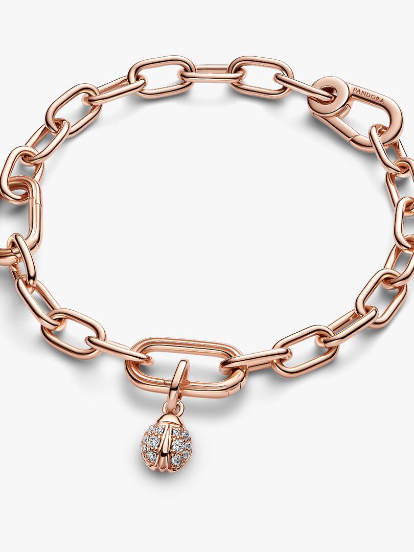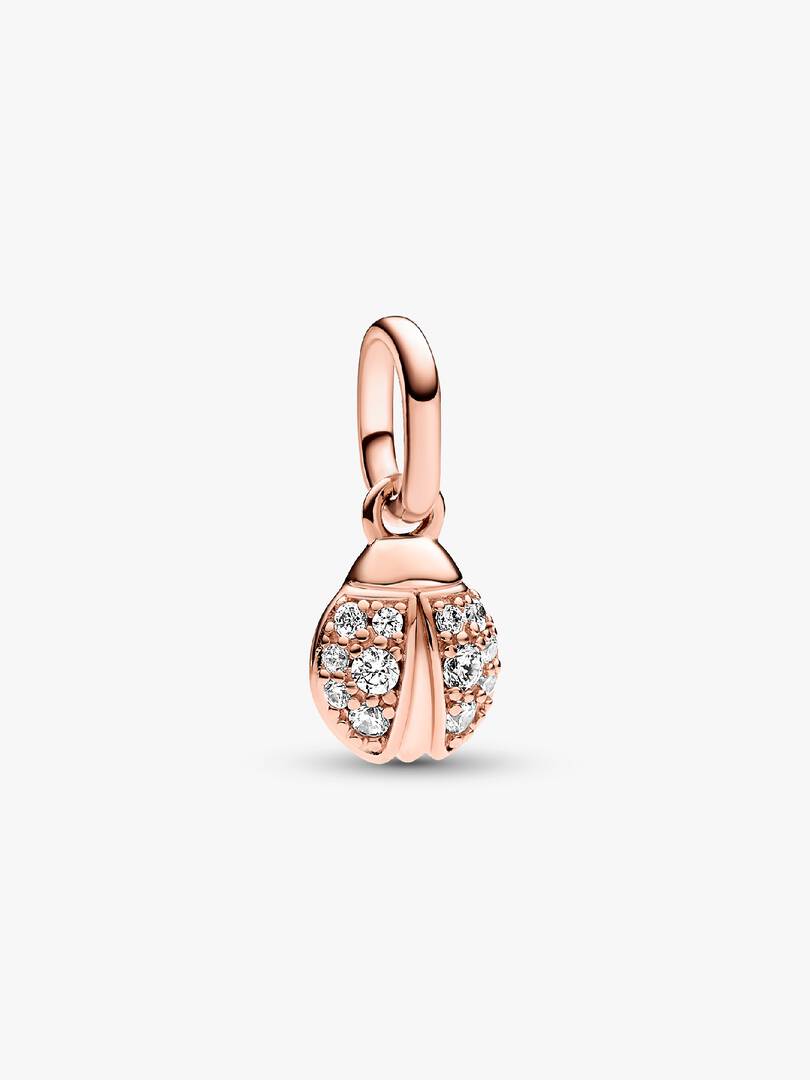 Keep luck on your side when you wear the Pandora ME Lucky Ladybird Mini Dangle Charm. This 14k rose gold-plated mini dangle charm is shaped like a ladybird with wings slightly open and studded with round sparkling stones, of different sizes. A symbol of luck and protection, this delicate ladybird charm will bring a dash of whimsy to your collection. Style it with other mini dangle charms that speak to you for a look that’s authentically you. Compatible with Pandora ME and Pandora Moments.