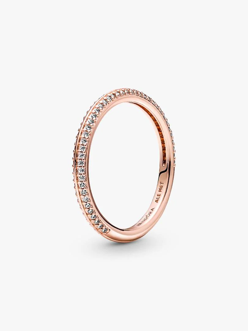 Remix your ring stacks with this Pandora ME Pav?? Ring, ready to be styled into fresh metal and color combinations that suit your mood every day. This 14k rose gold-plated ring has been pav?? set with 72 brilliant-cut cubi,c zirconia for a radiant look. Embrace the ultimate level of personalization by connecting this statement stacking ring to your other faves using the Pandora ME Two-ring or Three-ring Openable Links, then add up to three mini dangle charms that express who you are. Mix and match colors and stones next to each other to give your stacks a glow up. Ready to re-style your double ring stack? Follow a few simple steps to make sure your two favorite pieces detach with ease, so you can remix your look over and over. Whatever ring pair you’re rocking, ensure that the Two-ring Openable Link part faces upwards and slide only one of the two rings to the opposite side. Next, take off any mini dangle charms through the opening, one at a time, before removing the other ring. You’re now ready to change it all up again! Please note this item is only compatible with Pandora ME jewelry and will not fit our other collections.