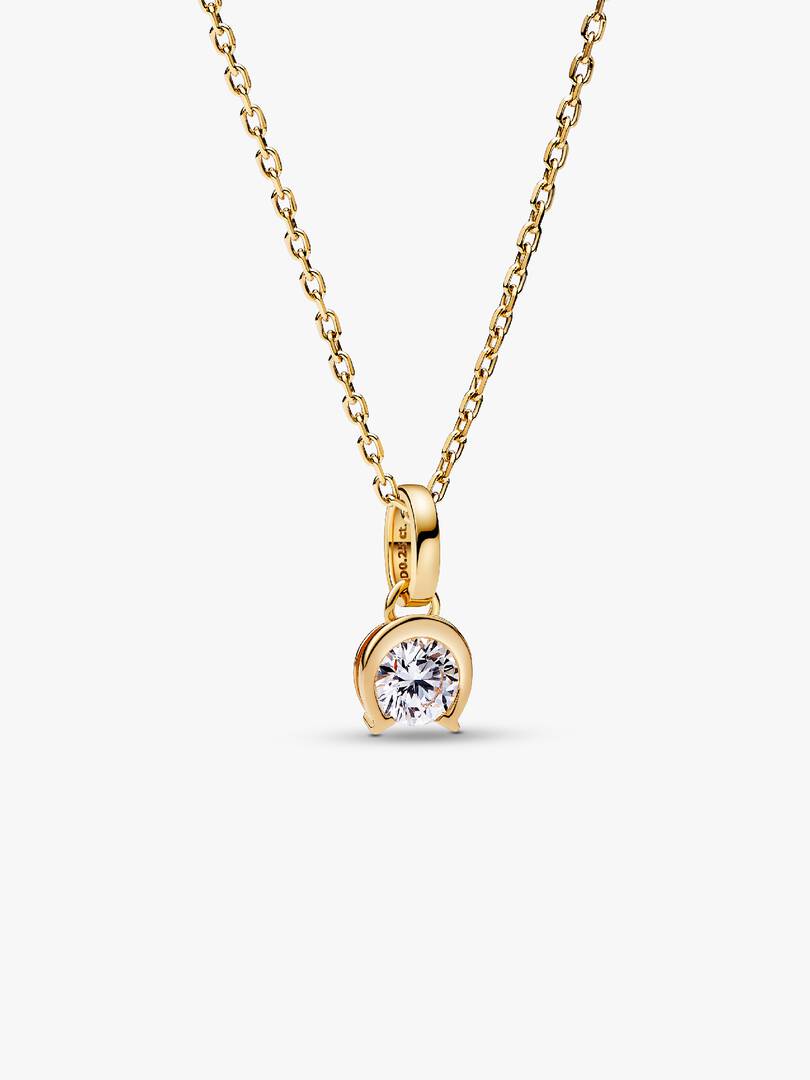 Make your own luck with the Pandora Talisman 14k Gold Lab-grown Diamond Horseshoe Pendant. This lab-grown diamond pendant features a 0.25 carat stone in a unique 14k gold setting inspired by a horseshoe motif. A cut-out ,at the back of the setting lets in the light for maximum sparkle. The horseshoe has long been considered a good luck charm, and finding one is thought to bring good fortune and protection. Wear it as a talisman to represent what you want to bring into your life or gift it to a loved one as a symbol of all that you wish for them. Each Pandora Lab-grown diamond is treated with a post-growth color enhancement called annealing.