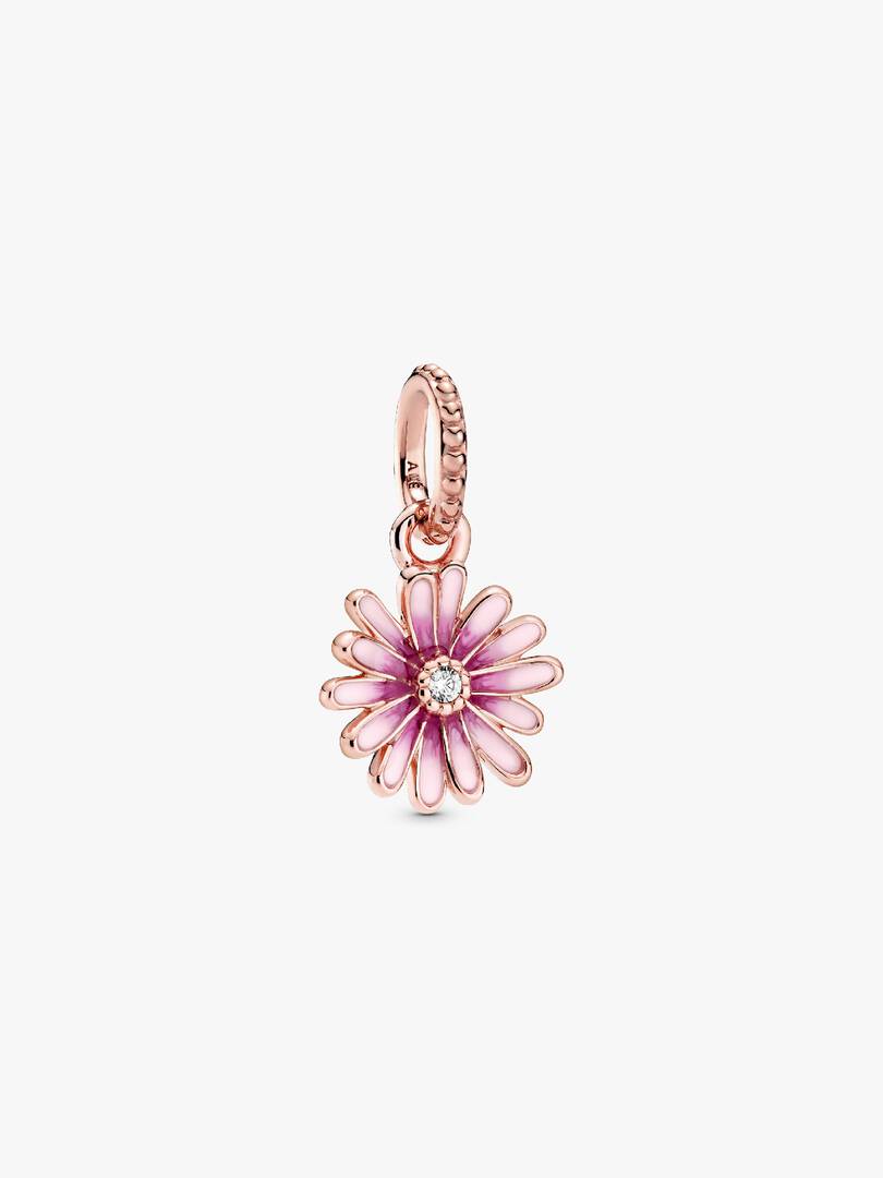 Celebrate spring in all of its glory with the Pink Daisy Flower Dangle Charm. Hand-finished 14k rose gold plating, the daisy charm features pink shaded enamel to bring the delicate, yet resilient flower to life. The spar,kling centre of the flower is made from cubic zirconia and the back of the flower charm features polished heart detail. Wear as a reminder to stay strong or gift to someone as a symbol of freedom.