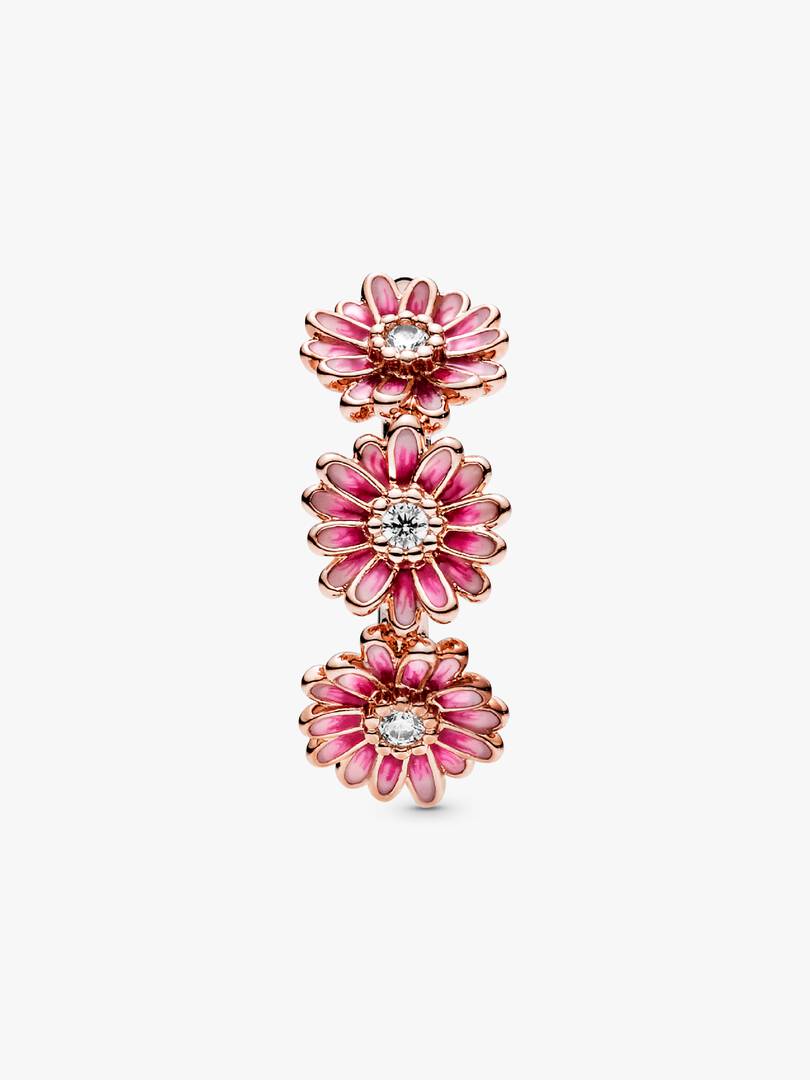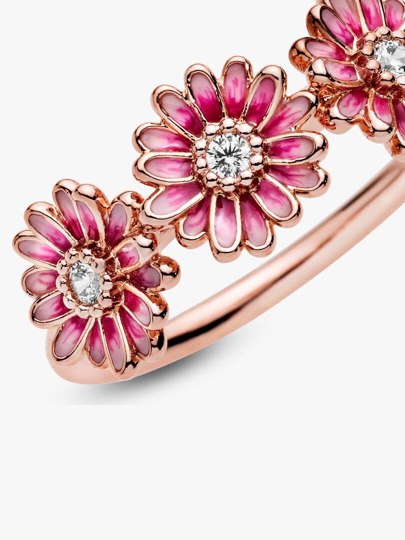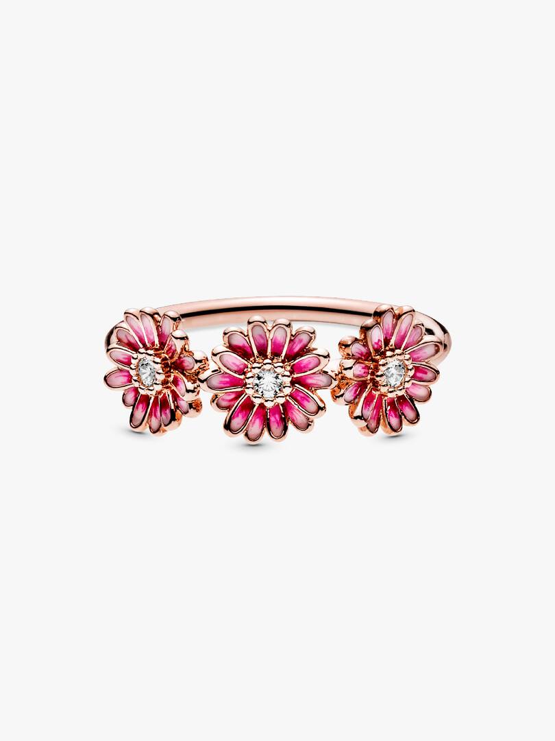 Bring flower power to your style with this flower crown-inspired Pink Daisy Flower Trio Ring. The daisy ring features a 14k rose gold-plated and is decorated with three enamel flowers with cubic zirconia in the centre. A, hand-painted finish brings the vibrant petals to life with delicate shading. Inspired by the daisy, a flower which blooms in adversity and represents freedom, the ring serves as a stylish reminder to stay true to who you are.