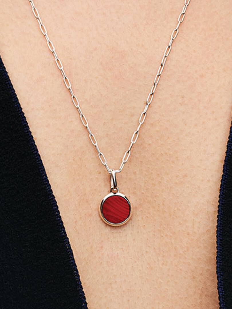 Mini size, maximum impact. This charm is crafted from sterling silver and Murano glass, inspired by the red agate stone with its vibrant color and wavy effect, symbolising protection, courage and power. The back is a bla,nk canvas for your personal engraving. It’s the perfect personalized gift for everyone on your list – including yourself.
