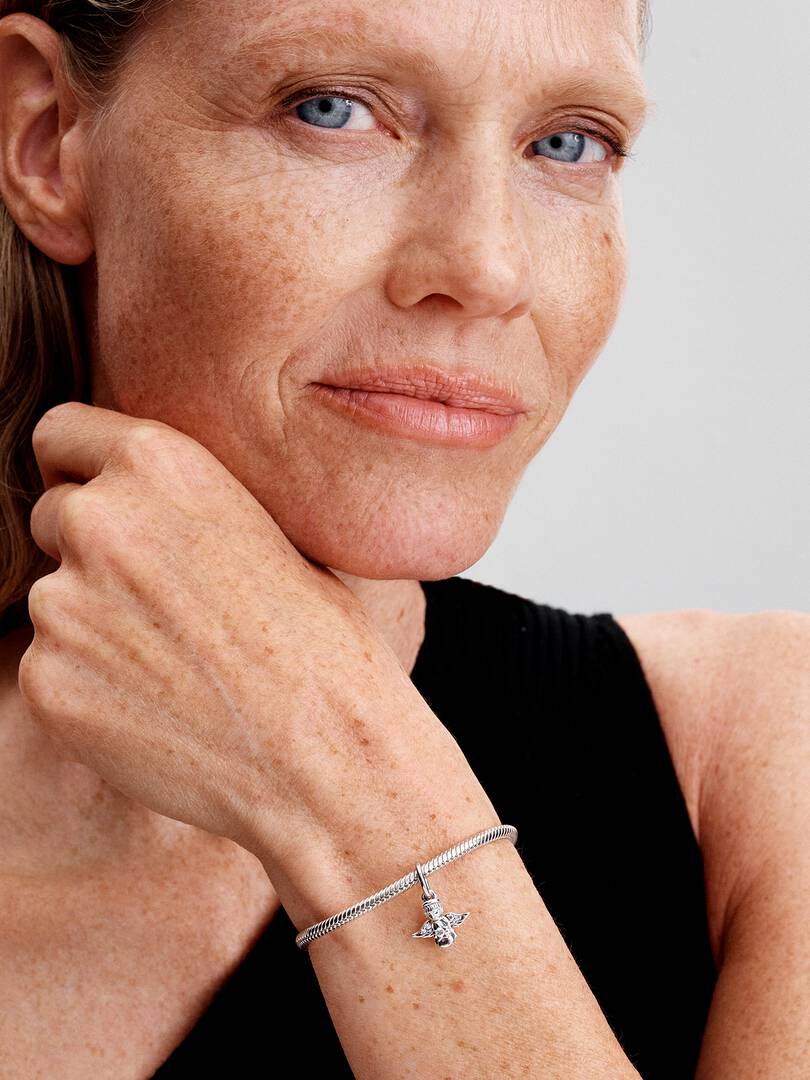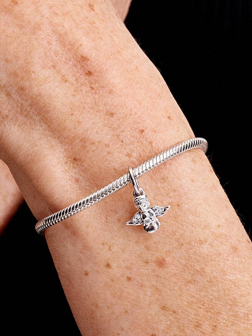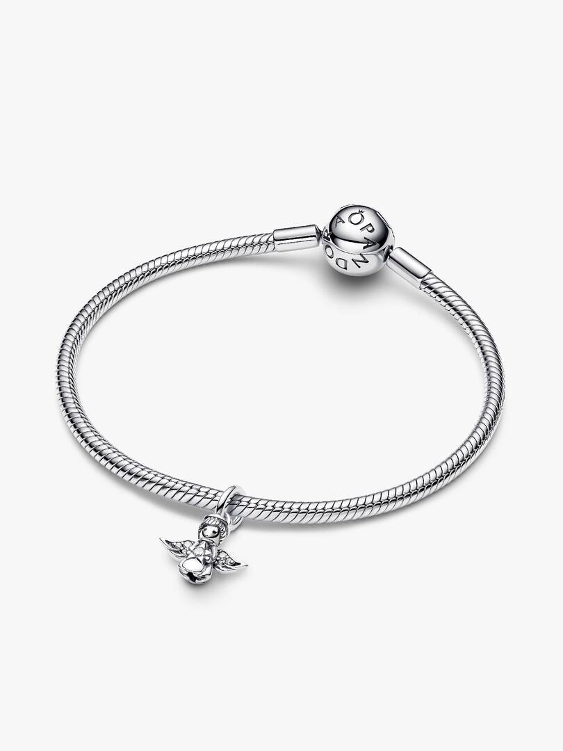 Carry the joy and wonder of the season with our Sparkling Angel Dangle Charm. A sterling silver angel with sparkling stone-set wings carries a sparkling star, shining its festive light for the holidays and beyond. Carry ,it as a reminder that you shine bright everywhere you go or gift it to whoever needs a little extra holiday joy in your life.