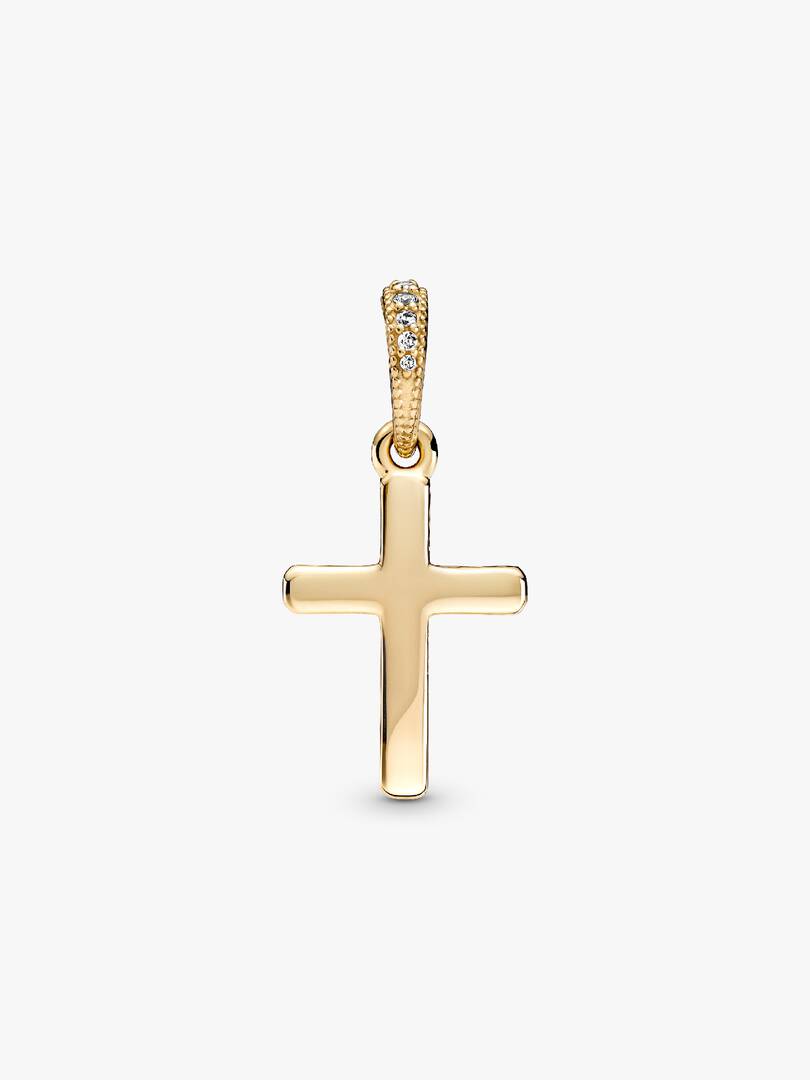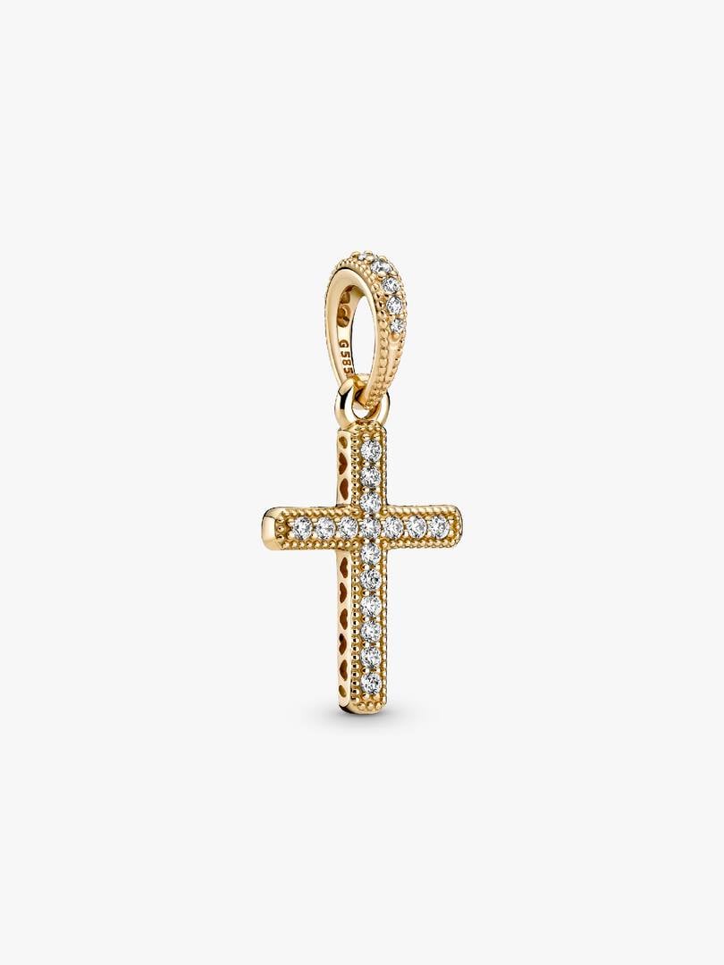 Introduce a classic piece of jewelry to your collection with the Sparkling Cross Pendant. Hand-finished in 14k gold, the front of this design is set with clear cubic zirconia, with a polished reverse side. Cut-out hearts, decorate the sides of the motif. Style on a simple chain for an elegant look or team with multiple 14k gold pendants for a warm-toned combination. Alternatively, gift to a loved one for a special piece they’ll treasure forever.