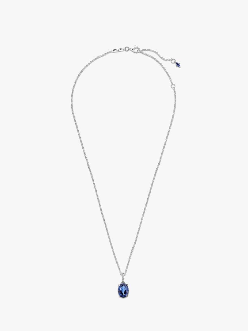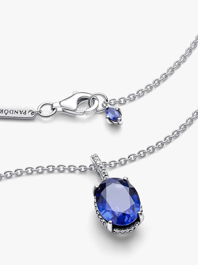 Add drama to your look with the Sparkling Statement Halo Pendant Necklace. Hand-finished in sterling silver and featuring a statement halo pendant set with blue man-made crystals, this is a subtle design and delicate for,m with unique detailing. The chain necklace is adjustable to three different lengths, so that you can create the perfect styling to match your look. It will serve as a staple in your collection for years to come.