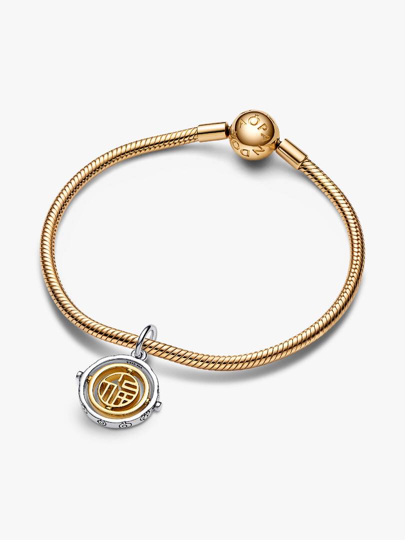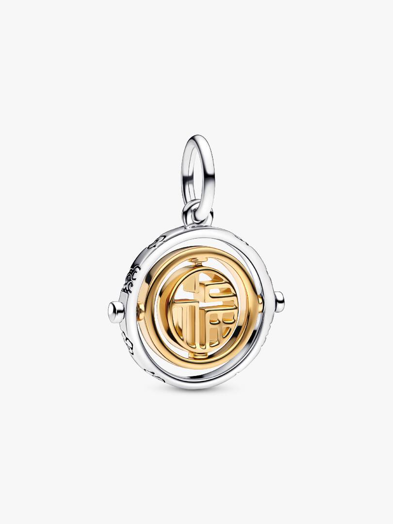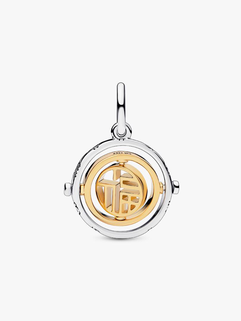 Add an icon of luck and prosperity to your collection with our Two-tone F?? Spinning Dangle Charm. The F?? symbol sits within two spinning 14k gold-plated circles and an outer sterling silver circle. A cut-out pattern is u,sed to depict the ancient way of writing F??, calling back to a time-honored tradition. Wear it to celebrate the new year and keep luck on your side always.
