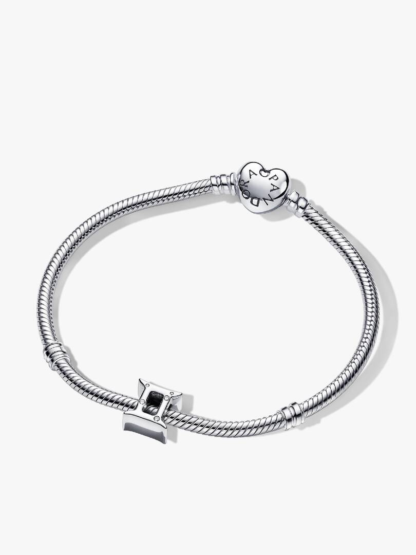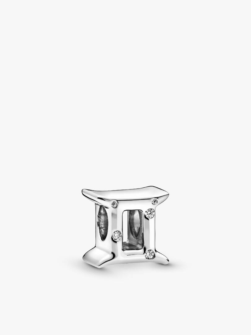 Create a stunning look that complements your adventurous side with this sparkling Gemini Zodiac Charm Bracelet Set in sterling silver. Geminis are the quintessential definition of a twin and this charm shows it. Wear the, polished side with sprinkled cubic zirconia for an elegant look or flip it to show the beaded back with tiny star details. Always ready for your next adventure, there??s never a dull moment when you??re wearing a Gemini charm pre-styled on a Pandora Moments Heart Clasp Snake Chain Bracelet.