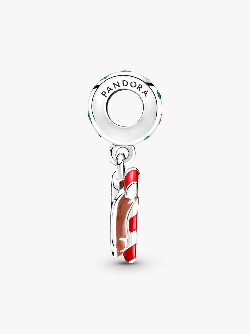This mischievous Gingerbread Man Dangle Charm will steal your heart. Hand-finished in sterling silver and decorated with colorful red, pink and green enamel, this dangle charm features a gingerbread man holding a red and, white striped candy cane. Bow and button details, as well as silver icing on his wrists, legs and head, bring the gingerbread man to life. This adorable dangle charm also features the lovely engraving “Life is Sweet”. Catch this gingerbread man before it’s too late!