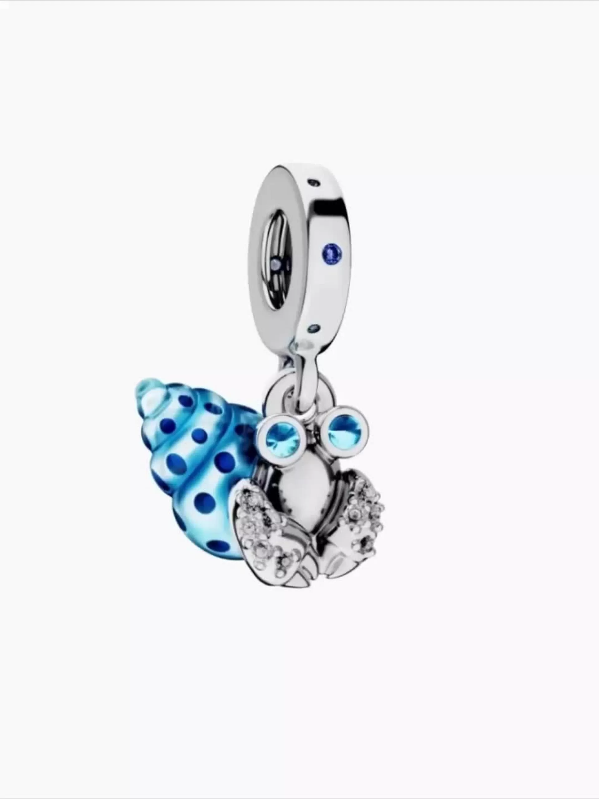 Home is a feeling you carry with you – just ask our little hermit crab. The Glow-in-the-dark Hermit Crab Dangle Charm is crafted from sterling silver and features a cute hermit crab with realistic details and a spiral sh,ell with hand-applied spotted blue enamel that glows green in the dark. Sparkling stones on the eyes, claws and bail bring the charm to life. Hermit crabs find a shell to call home, and when they outgrow the shell, they relocate to a new one. Wear this charm as a symbol of the comfort and safety of home and our ability to carry that feeling with us as we change and grow.
