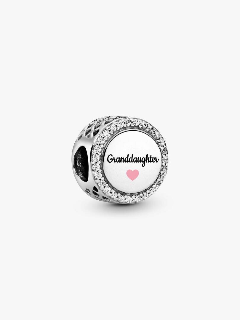 Honor your cherished granddaughter with this elegant Engravable Granddaughter Charm. Adorned with sparkling pav?? cubic zirconia, it??s engraved with “Granddaughter” and a delicate pink heart for a touch of warmth. The eng,ravable reverse side lets you add a personal note, creating a timeless memento she??ll treasure forever.