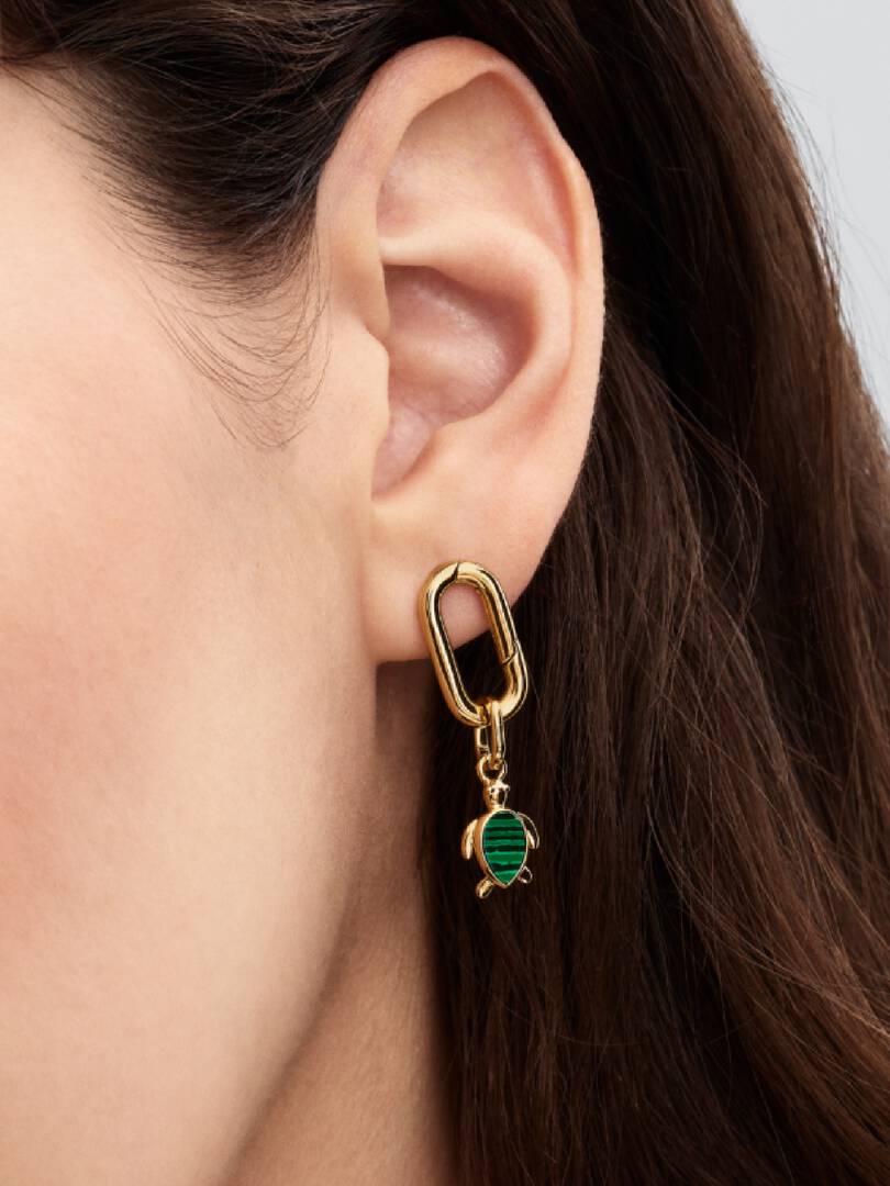 Discover a symbol of longevity and patience with this turtle-inspired charm, featuring a beautiful imitation malachite stone and intricate details.