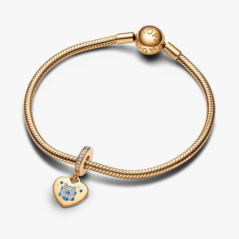 Crafted with love in 14k gold-plating, a beautiful blue Hanukkah gift box sits at the center of this heart-shaped pendant set with a row of pav?? along the bail, adding an extra touch of sparkle to the season of love and ,light. Believe in the magic, the power, the feeling of love. Wear your holiday joy. Be love.