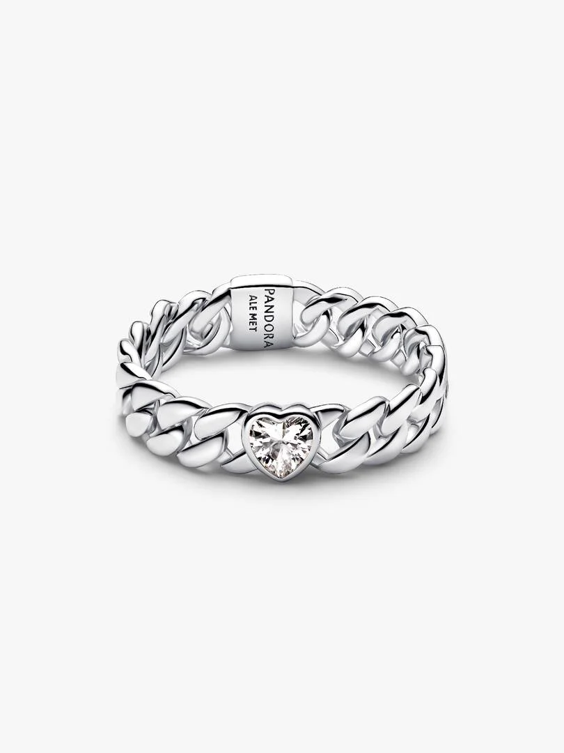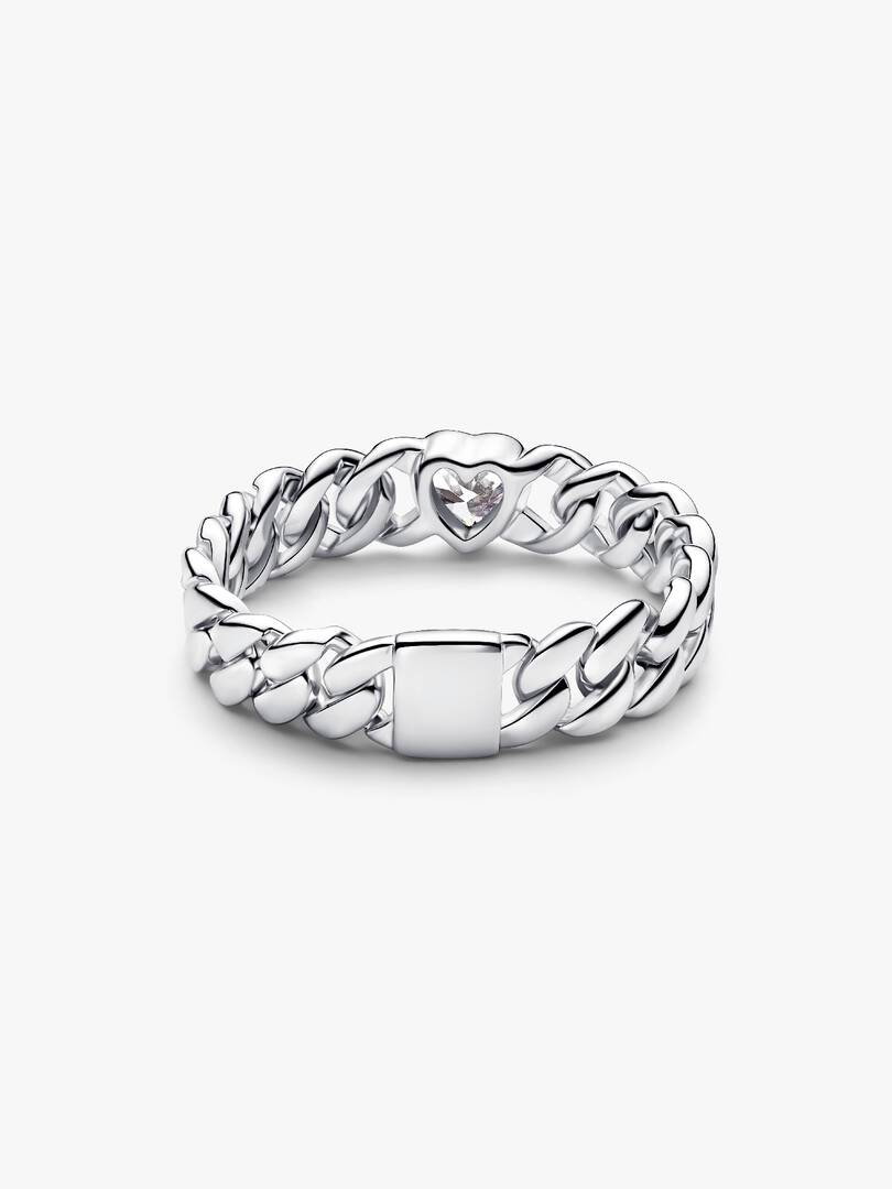 Go for bold. Our sterling silver Cuban chain ring features one bezel-set heart-shaped cubic zirconia, blending modern romance with effortless edge.