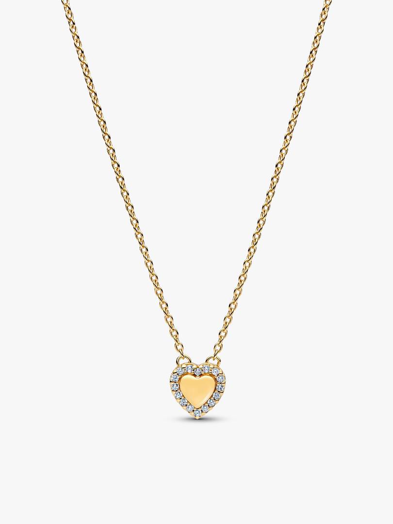 Mark your moment. This 14k gold-plated gift set features a halo heart necklace with space to engrave a name or date, paired with sparkling stud earrings, all set with clear cubic zirconia.