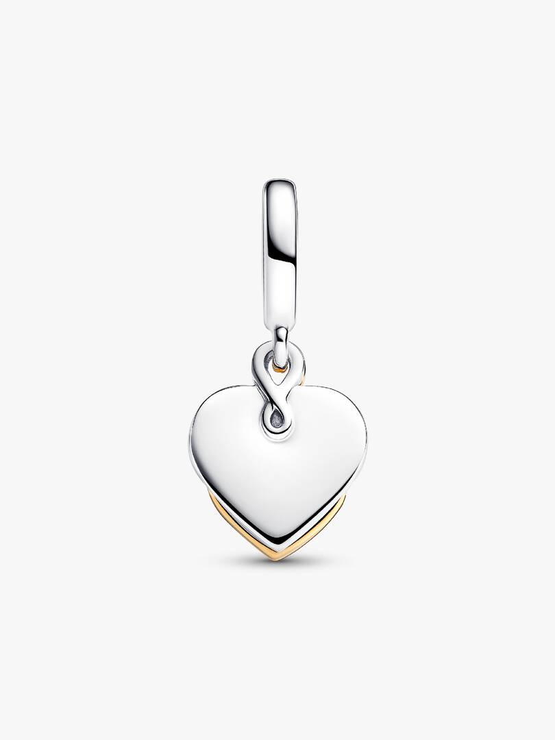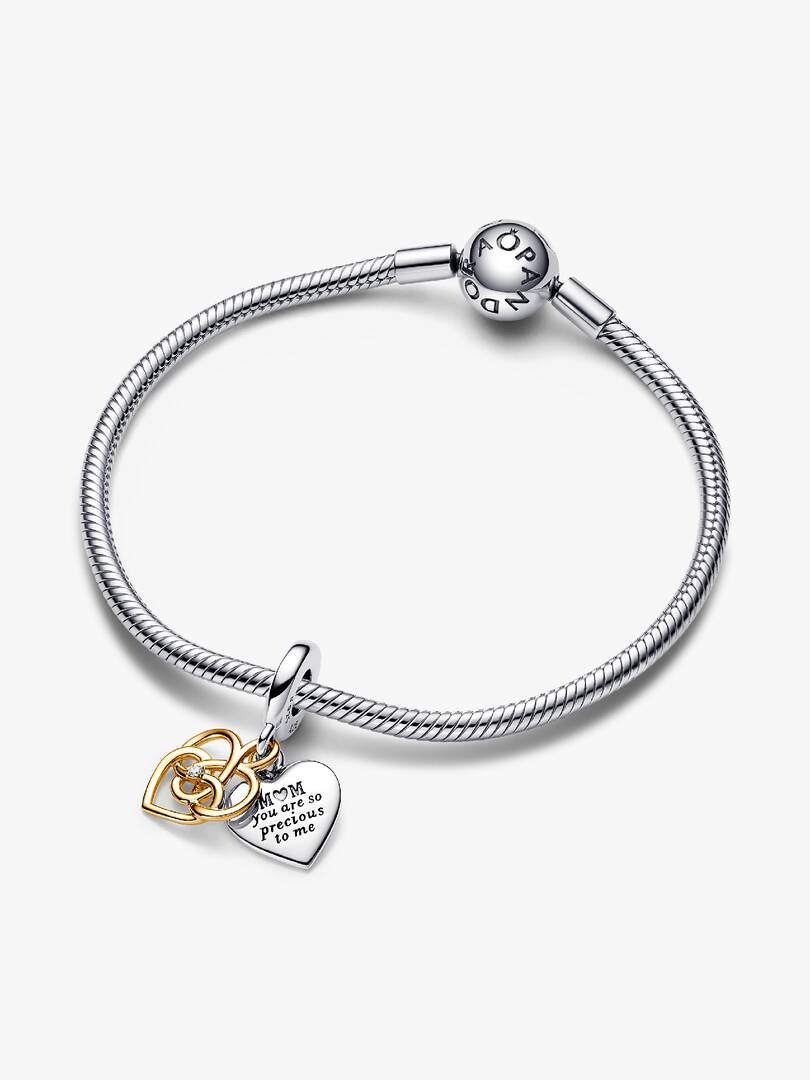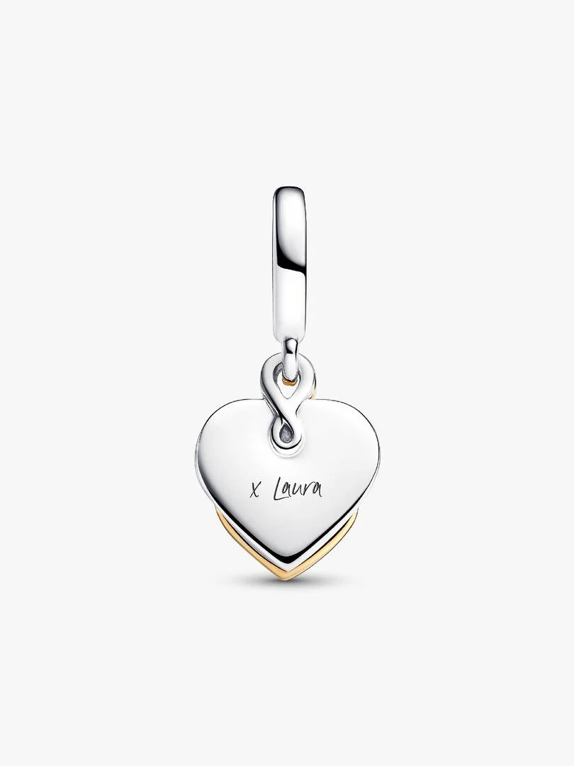 The power of motherly love shines bright in our Lab-grown Diamond Engravable Mom Double Dangle Charm. Featuring a 14k gold-plated heart motif on a heart-shaped disc intertwined with a knot-inspired openwork heart, it emb,odies the infinite love for Mom. A 0.009 ct lab-grown diamond shines at the center, symbolizing her preciousness. The other disc crafted in sterling silver carries a heartfelt engraving that reads “Mom you are so precious to me”, while its back is engravable for a personalized touch. Please note, that each lab-grown diamond is treated with a post-growth color enhancement called annealing.