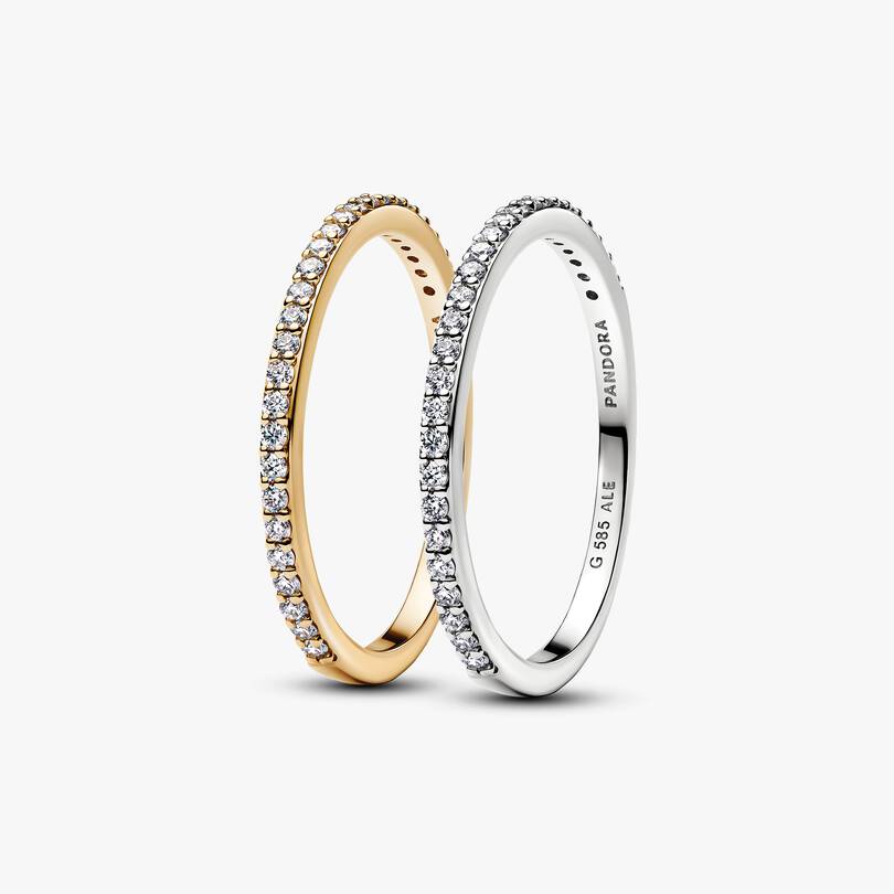 Add radiance to your ring stack. This duo set includes a 14k gold ring and 14k white gold ring, each set with lab-grown diamonds in a pav?? style.