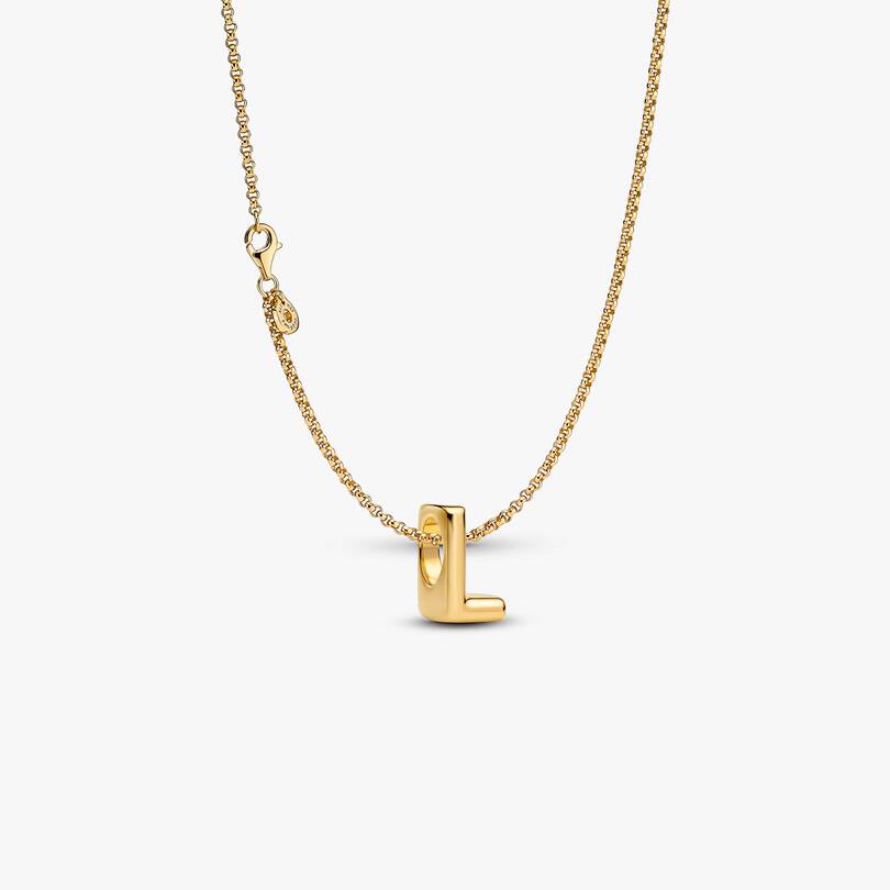 What does L represent to you? Make a statement with a Letter L Alphabet charm necklace. This 14k gold-plated set includes the Rolo Chain Necklace and Letter L Alphabet Charm, perfect for personalization.