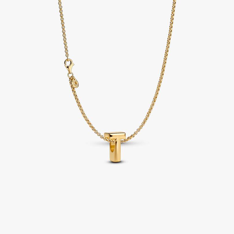 What does T represent to you? Make a statement with a Letter T Alphabet charm necklace. This 14k gold-plated set includes the Rolo Chain Necklace and Letter T Alphabet Charm, perfect for personalization.