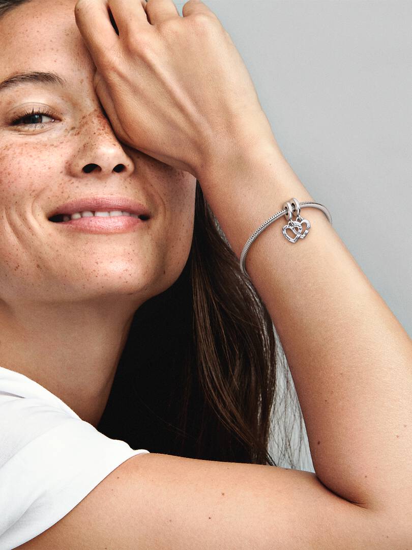 Linked Sister Hearts Split Dangle Charm Sterling silver