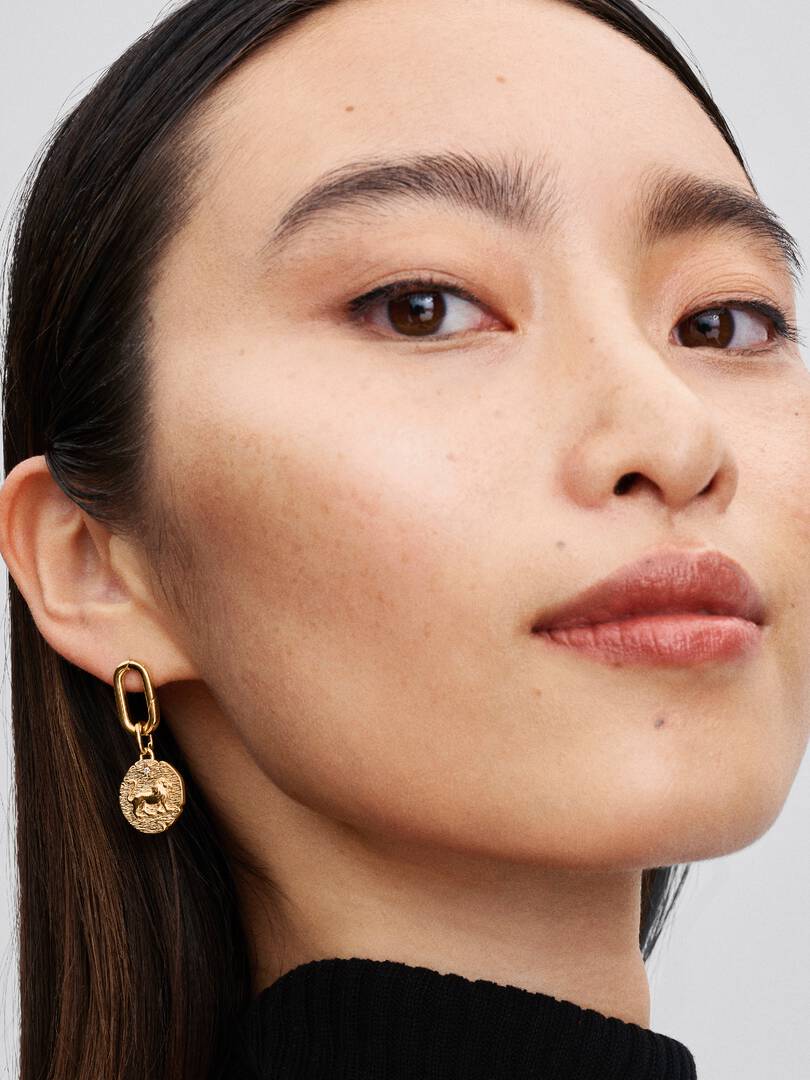 Bold by nature. Brave by choice. This 14k gold-plated medallion features a vintage-inspired lion motif on the front and Latin wisdom on the back ?? ‘VITA VERITAS VIRTUS’, which translates to ‘LIFE, HONESTY, COURAGE??.