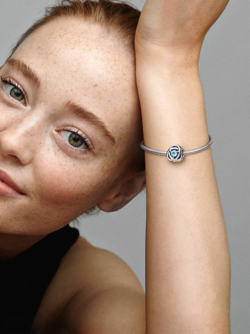 March Sea Aqua Blue Eternity Circle Charm Sterling silver