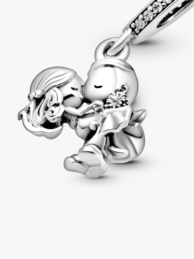 Make the special moment last forever with the sterling silver Married Couple Dangle Charm. Let the romance of saying ??I do?? live on with this emotional charm featuring a newlywed couple kissing. The groom gently holds hi,s bride as she carries her flowers in her hands and the bail is set with clear cubic zirconia. Make this meaningful piece a part of your collection or gift it to a bride close to your heart.