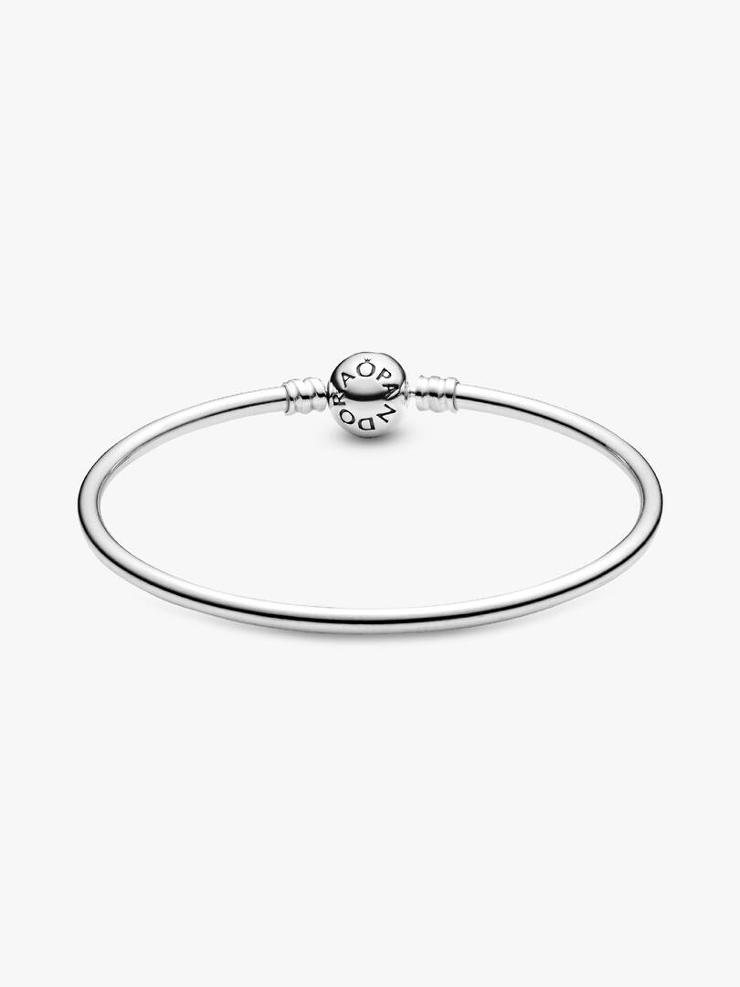 Sleek and elegant, this Pandora Moments bangle is simply beautiful. Crafted in polished sterling silver, it is finished with an embossed ball clasp. Wear this Pandora bangle on its own or create your dream bracelet by ad,ding your personal collection of Moments charms.