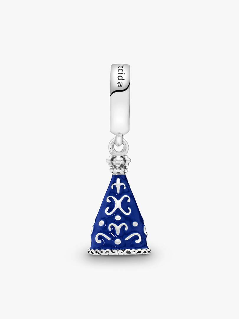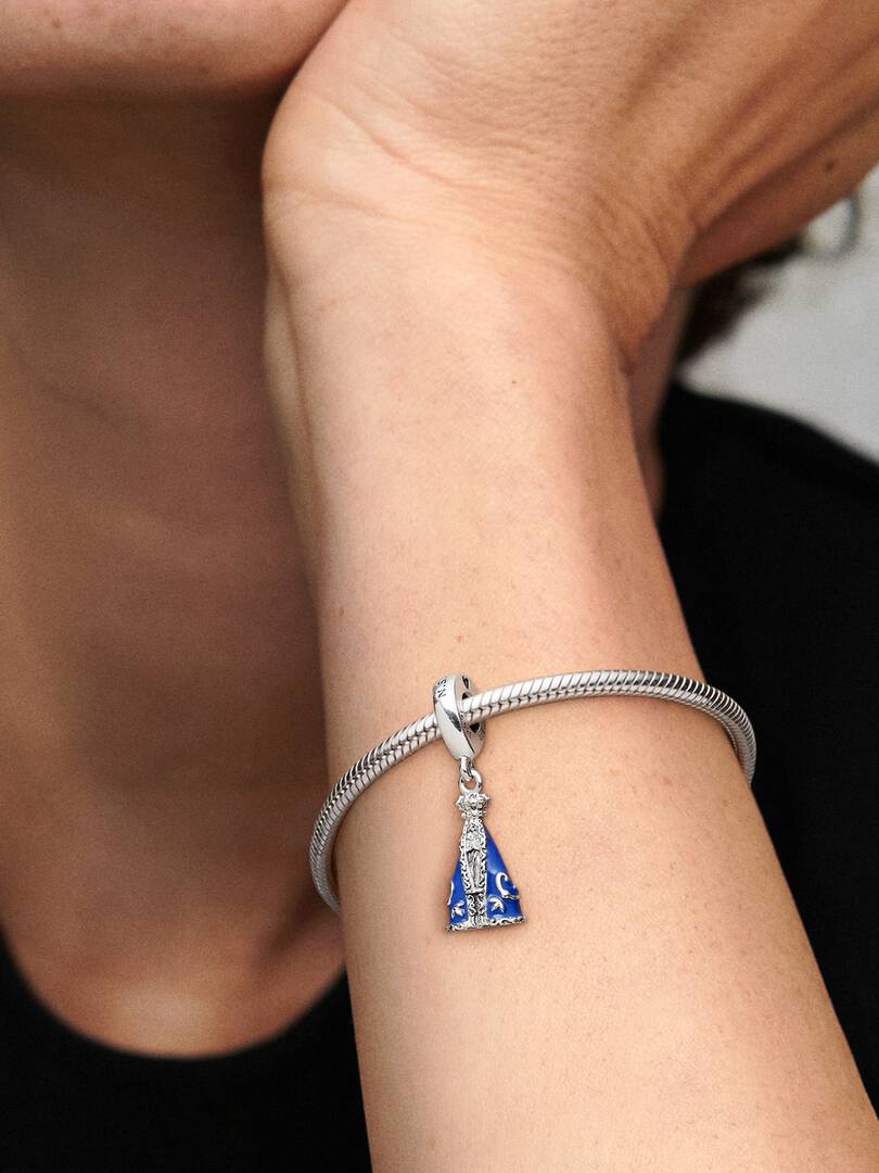 The principal patroness of Brazil, Our Lady of Aparecida is a famed clay statue and religious icon. Our sterling silver dangle charm is shaped to resemble the Catholic effigy and detailed with a blue enamel robe and bead,ed crown. Engraved with “N. S. Aparecida” in reference to her Brazilian moniker, Nossa Senhora Aparecida, it’s a meaningful addition to a Pandora Moments bracelet. You can even wear it as a pendant on a necklace chain.