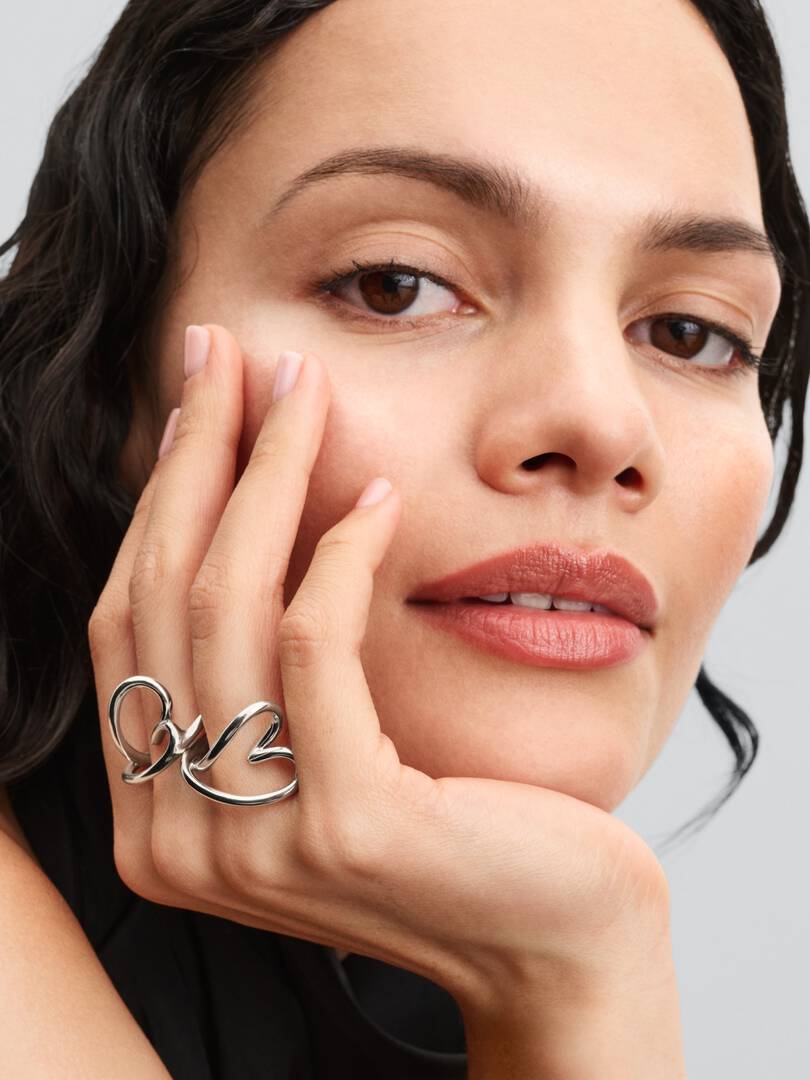 Bring love and nature together with the Organically Shaped Heart Ring. A subtly wavy sterling silver band splits into an imperfectly-shaped openwork heart that follows the finger horizontally at the front. When worn, onl,y the middle part of the heart touches the finger while the rest of the ring is raised. Designed in a slightly scaled-up size, this sculptural heart ring makes a sleek and modern statement and pairs beautifully with other minimalist styles.