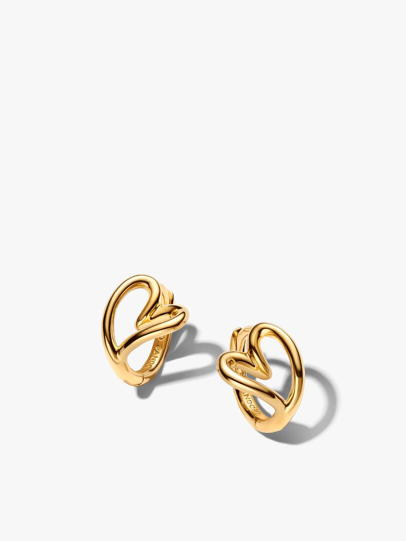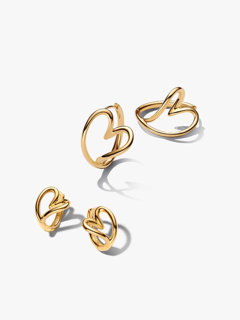 Hearts in motion. This 14k gold-plated earring set features openwork organic heart hoops in two different sizes. Each earring within the pair mirrors the other perfectly for subtle or statement styling.