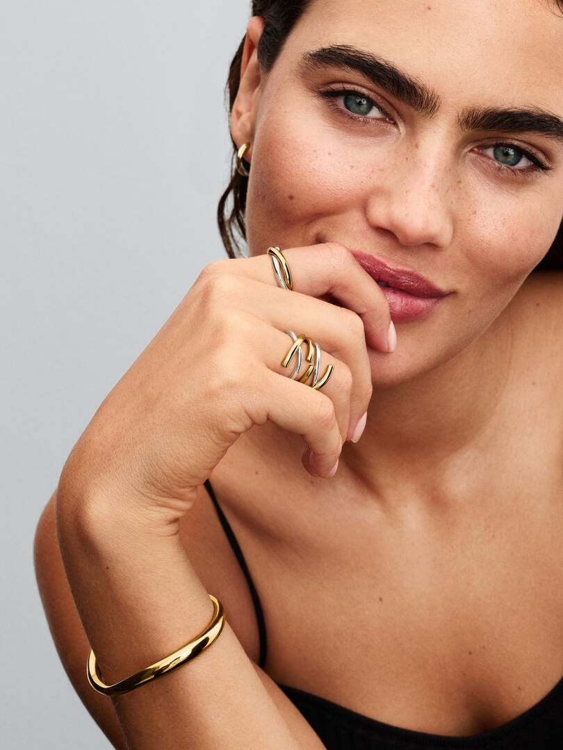 Organically Shaped Two-tone Double Ring Sterling silver, 14k gold plating