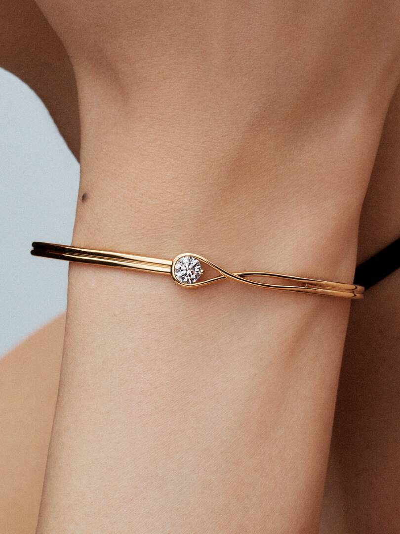 Celebrate your power to shine with this Pandora Infinite 14k Gold Lab-Grown Diamond Bangle, hand-set with a radiant 0.50 carat lab-grown diamond. The round, excellent cut lab-grown diamond floats inside our unique infini,ty motif, which flows around the stone as if it’s ethereally suspended in mid-air. Our closed bangle design features a slender profile and functional hinge and clasp mechanisms, promising security and comfort. We recommend handling it with extra care to ensure optimal functionality and longevity. Let yours shine alone or inspire an elevated everyday stack. Each Pandora Lab-grown diamond is treated with a post-growth color enhancement called annealing.